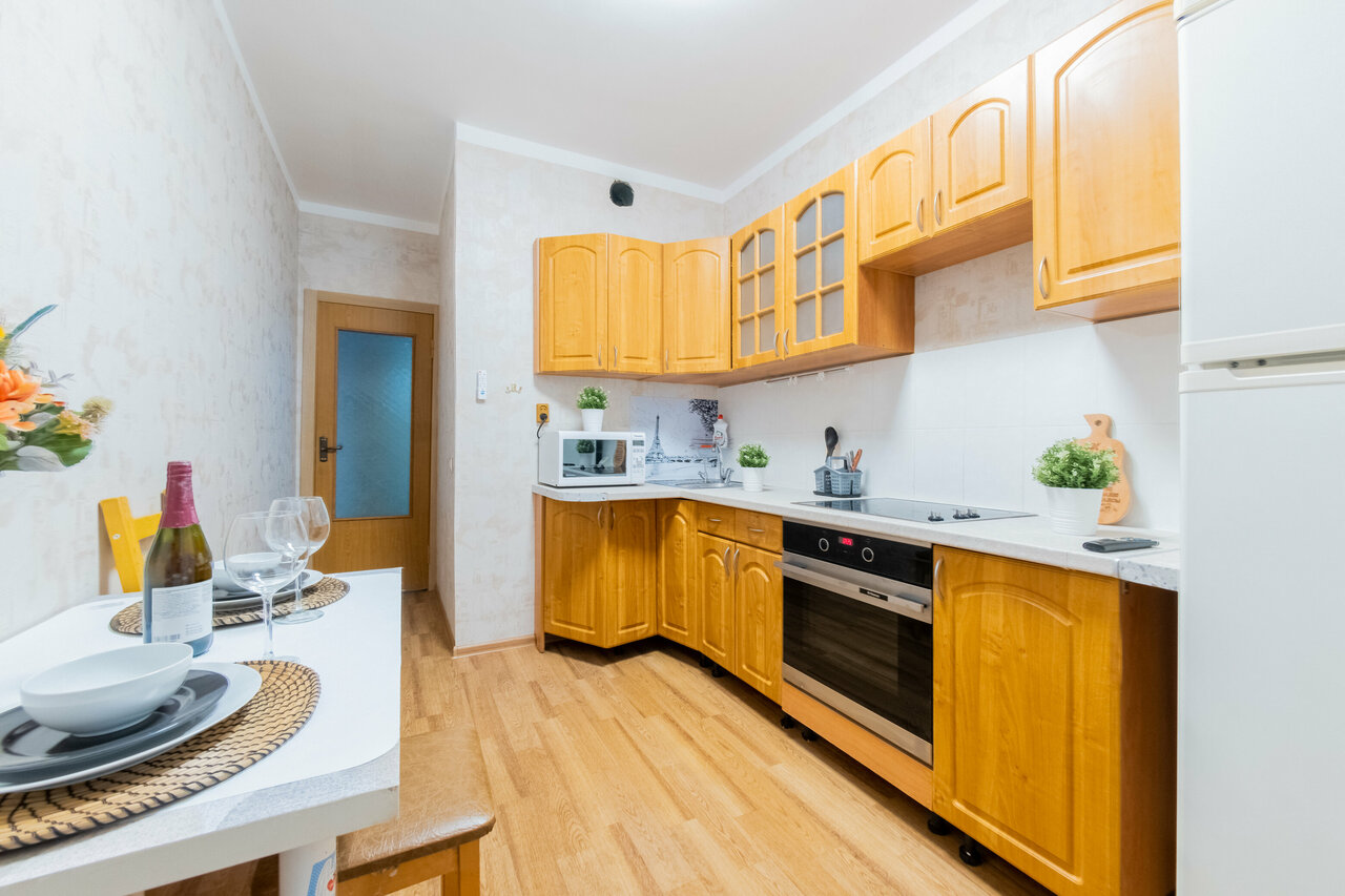 Апартаменты очень понравились! Все чисто, убрано. Новые полотенца, постельное белье, клевая кухня — как дома!