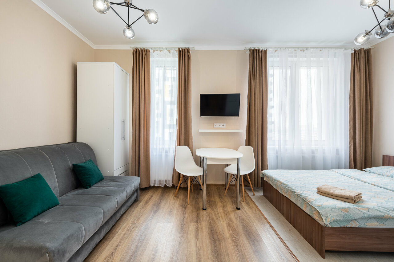 Отличные квартиры! Уютно, тепло и чисто. Хороший выбор, удобное расположение! Есть все необходимые принадлежности в ванной и на кухне!