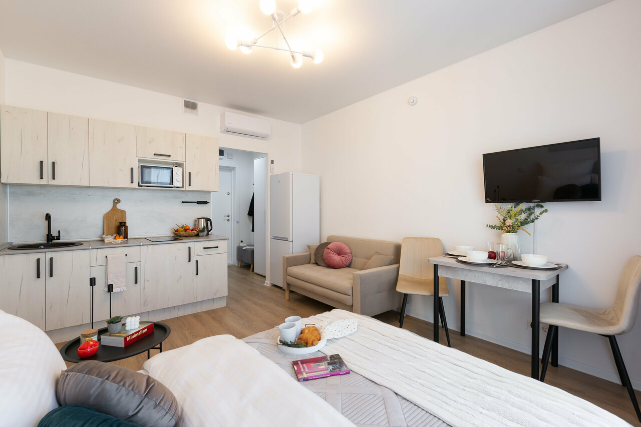 Уютная студия бизнес класса в ЖК “Дмитровский Парк”!метро Яхромская, Лианозово, Селигерская (8 мин на авто);МЦД Грачёвская (8 мин на авто);аэропорт Шереметьево (25 мин на авто)В квартире есть все необходимое для проживания 4-х человек.