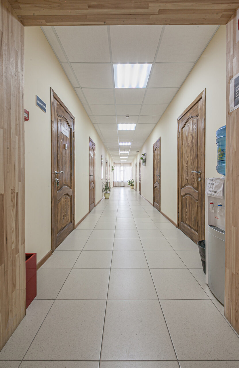 Хороший недорогой отель. Жили там 3 дня. Из минусов холодильник и утюг общий в хоз комнате. Есть парковка для авто. На первом этаже рядом столовая.