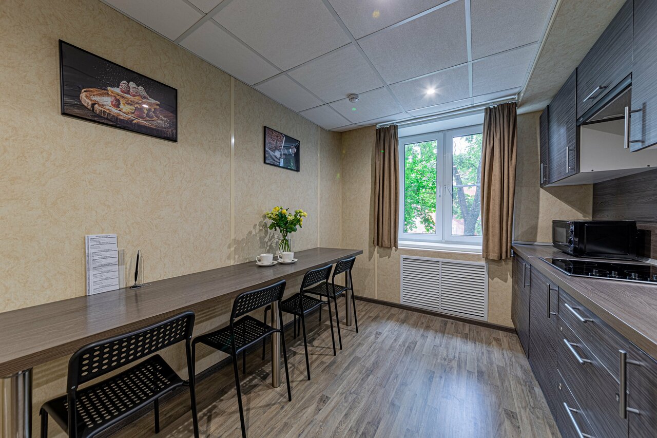 Хороший мини-отель. Останавливаюсь здесь уже не первый раз. Компактно, чисто, приветливый персонал. Общая, кухня со всём необходимым оборудованием и общим холодильником с бирками проживающих. Идти доткузни далековато по узкому коридору… и в солидарности немножко подвальный запах… А так, всё отлично. Кто любит минимализм — милости просим…