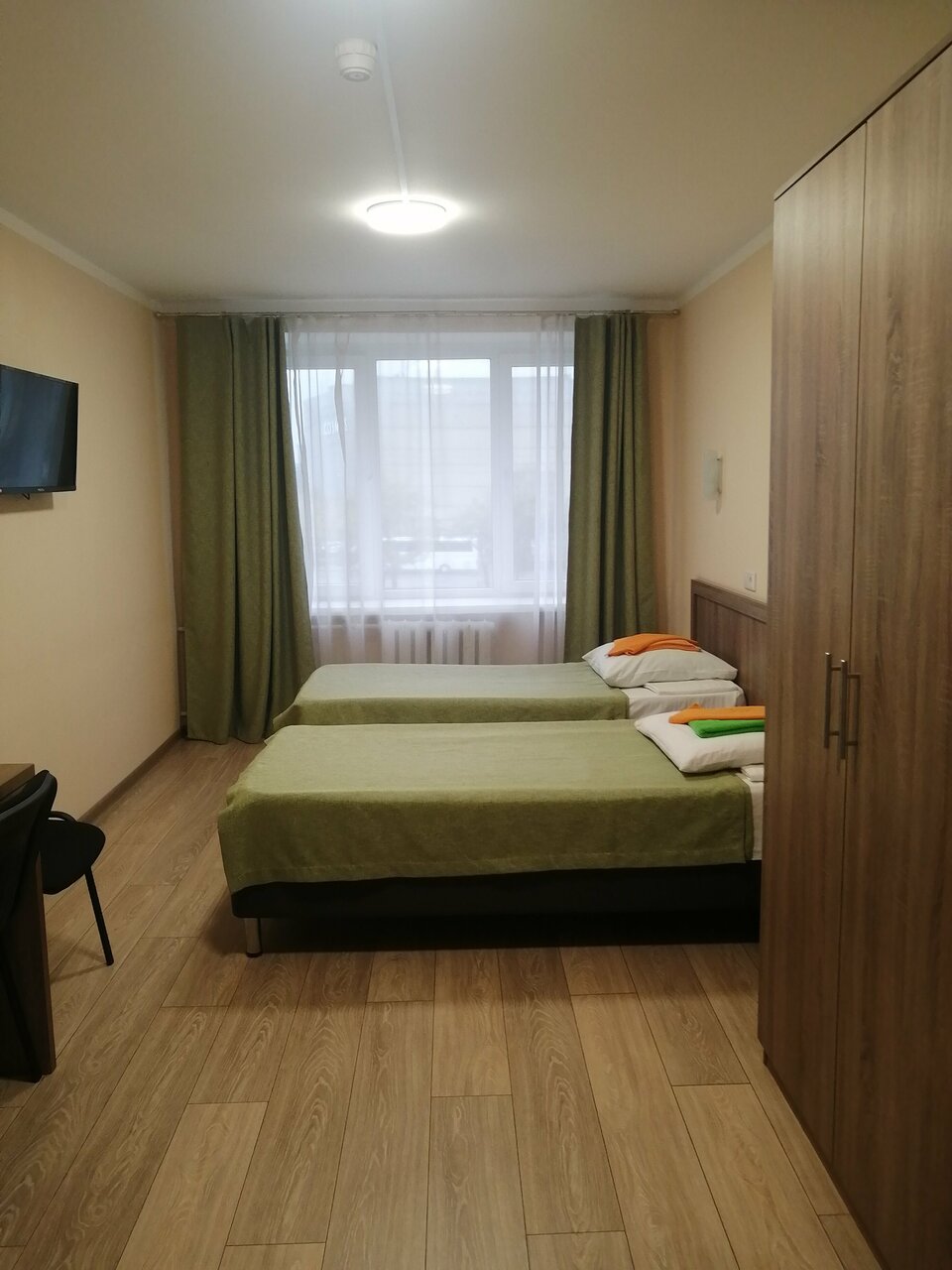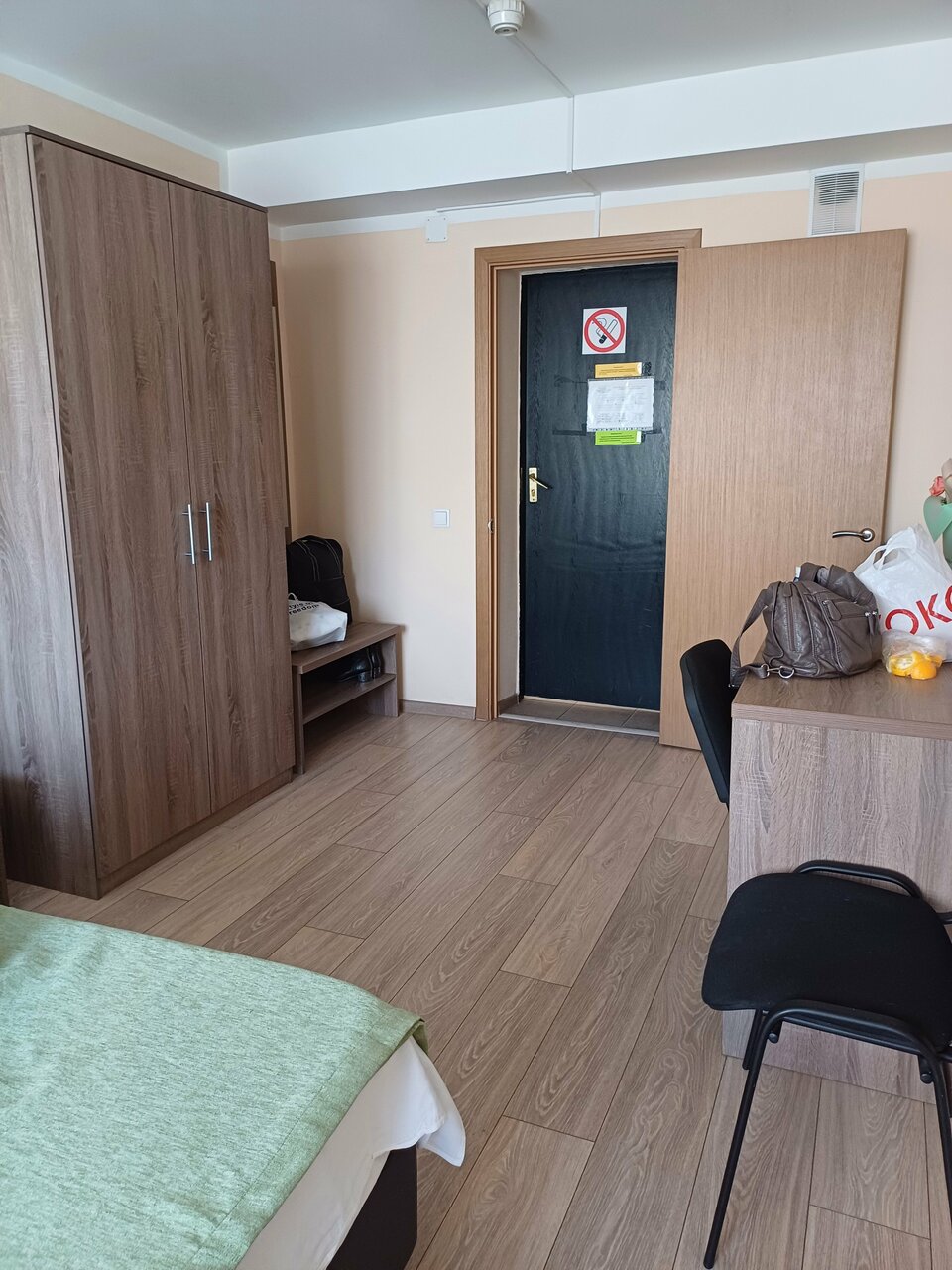Удобное месторасположение, любой транспорт: метро в пяти минутах ходьбы, автобусы, трамвай. В номере чисто, все есть для проживания, удобства и кулер на этаже.
