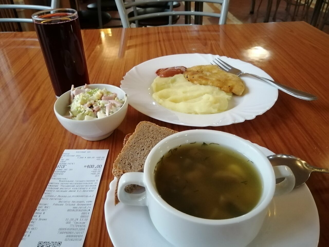 Удобно расположенная гостиница при институте. Есть столовая и завтраки. Душ и туалет на этаже — сантехника современная, после ремонта, все достойно. А сам номер, конечно, не фонтан. Линолеум с дырами, пол с ямами, кровати и шкаф 90-х годов, телек современный, но ловит пять каналов с трудом. Впрочем, вдвоем переночевать в центре Москвы в двух шагах от ВДНХ за 1700 — вполне достойный вариант, как по мне.