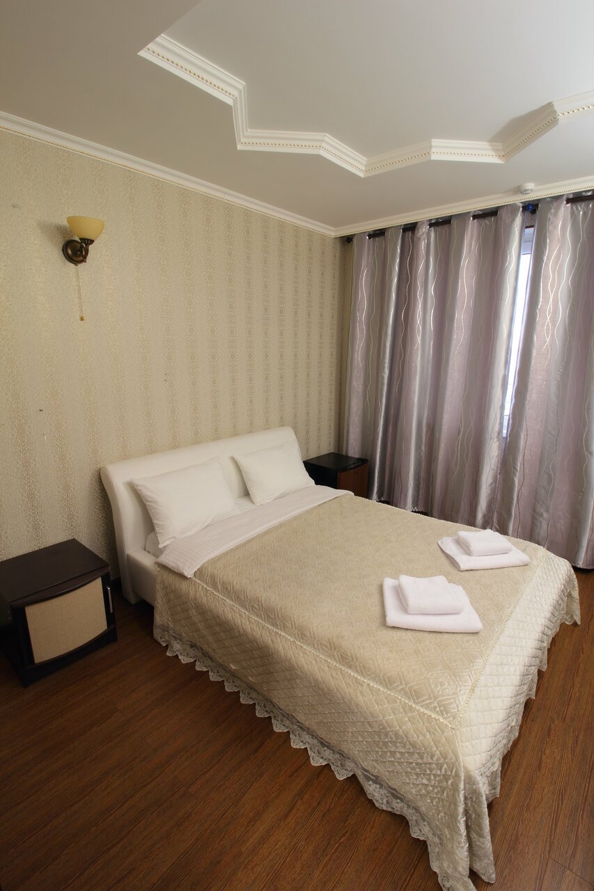 Замечательный отель! Уютный. Всё необходимое для комфортного отдыха в номере есть. Хотя днём меня в номере не было, так как я здесь в командировке, но вечером чувствовал себя как дома. Душ, полотенца все свежие. Девчата днём номер убрали, и полотенца поменяли. Еду разогрел в микроволновке на кухне. Из холодильника достал пивко. И через несколько минут чистый, сытый, и довольный улёгся смотреть телевизор. Всё как дома. Утром администратор разбудит. Горничная бесхитростный завтрак быстренько приготовит. Можно выдвигаться на работу. И так всю неделю. Кстати, цены настолько низкие, что моё руководство в целях экономии, чтобы не гонять сюда машину на загрузку, решило что дешевле будет снимать отель. Вот так! Персонал вежливый, добродушный. Особенно чувствовал заботу когда дежурила Катя. У неё всё под контролем, всё оперативно. Всем рекомендую этот отель! Отлично проведёте здесь время. Отдохнёте. Не пожалеете!