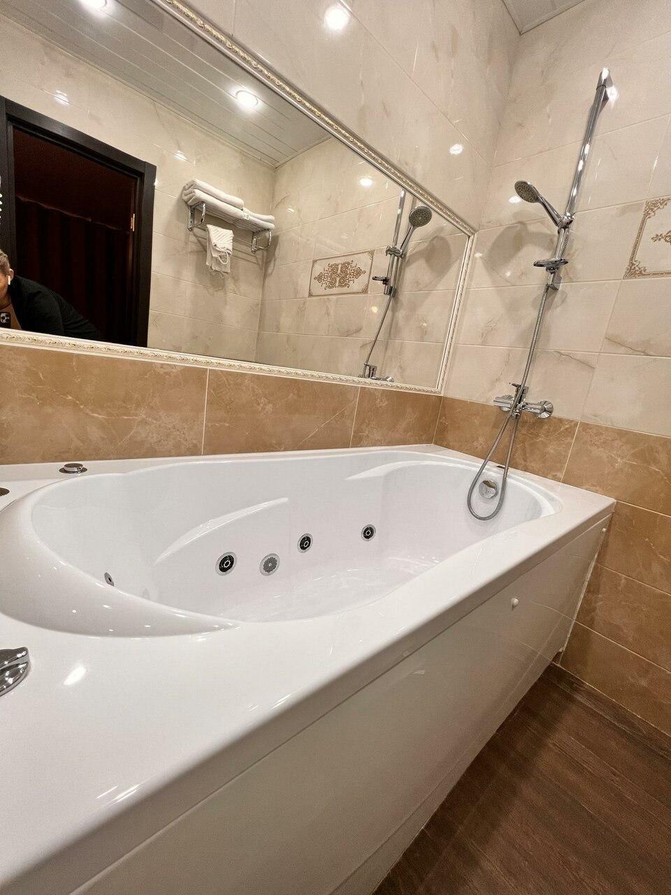 - Де Люкс с большой кроватью и гидромассажной ванной 3500₽