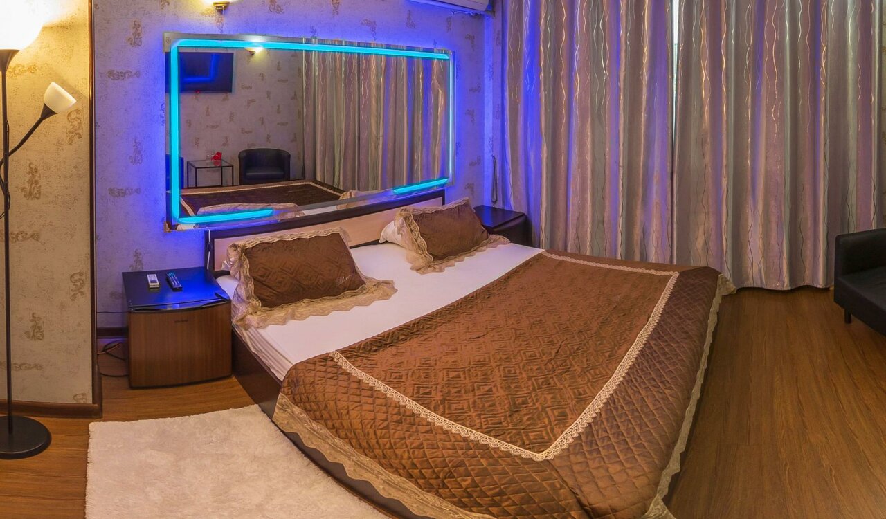 Уютный и просторный номер полулюкс с большой двуспальной кроватью. Здесь вы сможете полноценно отдохнуть и насладиться комфортом и непринужденной обстановкой.Каждый дополнительный час +200₽