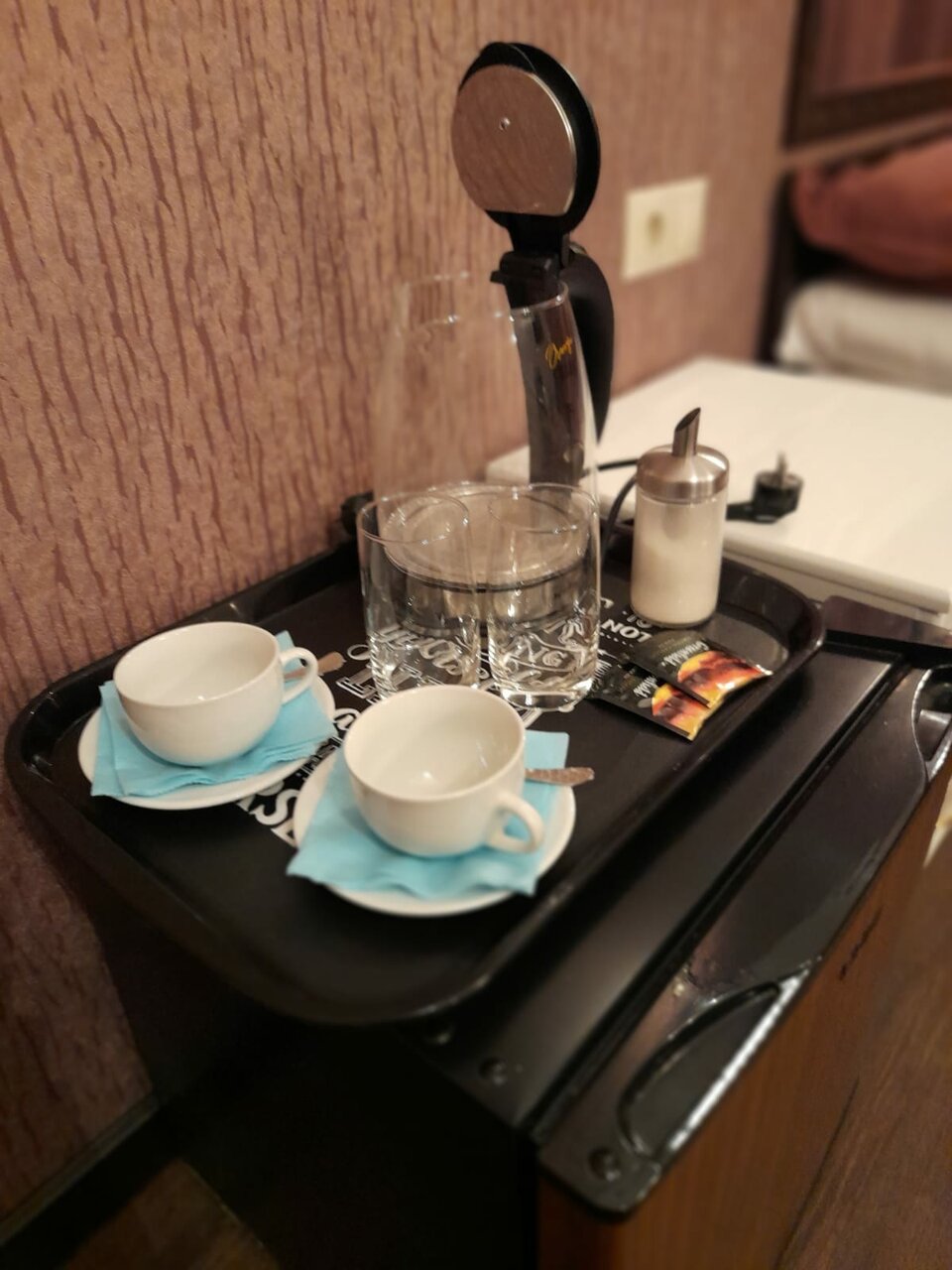Все,что написано в отзывах-неправда. Чайника нет, про чай/кофе и говорить не приходится. Воду надо выпрашивать у администратора. Пульт от телевизора пришлось просить несколько раз,не было в номере,не поверила админ,проверяла. В комнате закрывать дверь изнутри запрещено, из-за этого была гневная тирада с возмущениями со стороны ресепшена. Ужасное отношение,никогда больше не остановлюсь и не порекомендую этот отель!!