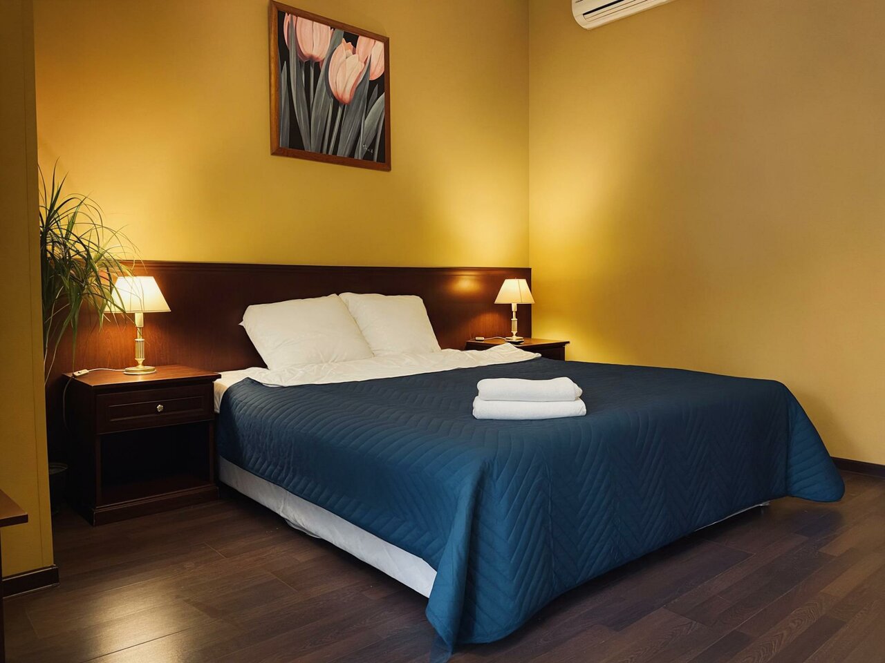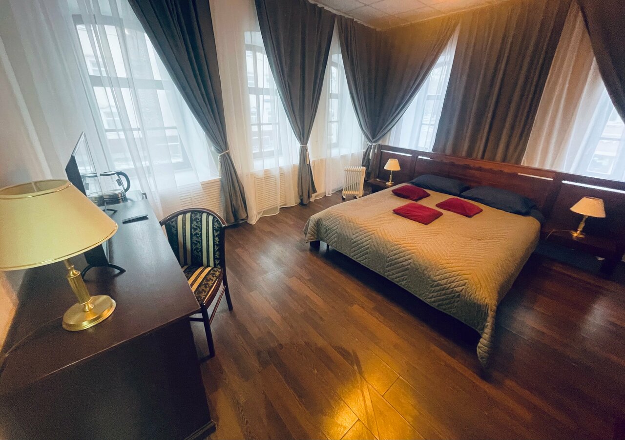 Номер делюкс комфорт уютный и чистый, запах табака отсутствует . Отель имеет удобное расположение от метро около 7мин. Отель находится в историческом здании, имеется парковка, транспортная доступность электричка у метро. В номере есть все, что нужно — холодильник, микроволновка, телевизор, чайник, фильтр, нагреватель, чайный сервиз стаканы и бокалы. Имеется санузел с душевой кабиной. Бесплатный WiFi. Оплатил проживание онлайн. Пришёл чек на электронную почту. Хозяин также распечатал бронирование, чек и выдал справку о проживании. Для отчётности в бухгалтерии этих документов хватило.