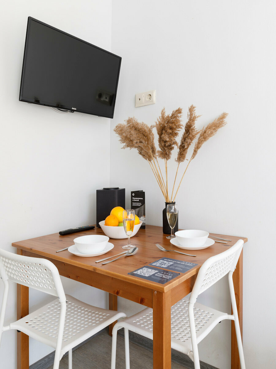 Услуги: — Номера от 3000 до 6000 ₽/ночь с кондиционером, санузлом, звукоизоляцией, Wi-Fi, телевизором, холодильником и феном. — Кухонные уголки (плита, микроволновка, чайник, посуда), стиральная машина, утюг. — Завтрак по меню (опционально), детские кроватки, парковка. — Яндекс Станция с Алисой, чай/кофе в номерах. — Ускоренная регистрация, ежедневная уборка, прачечная.