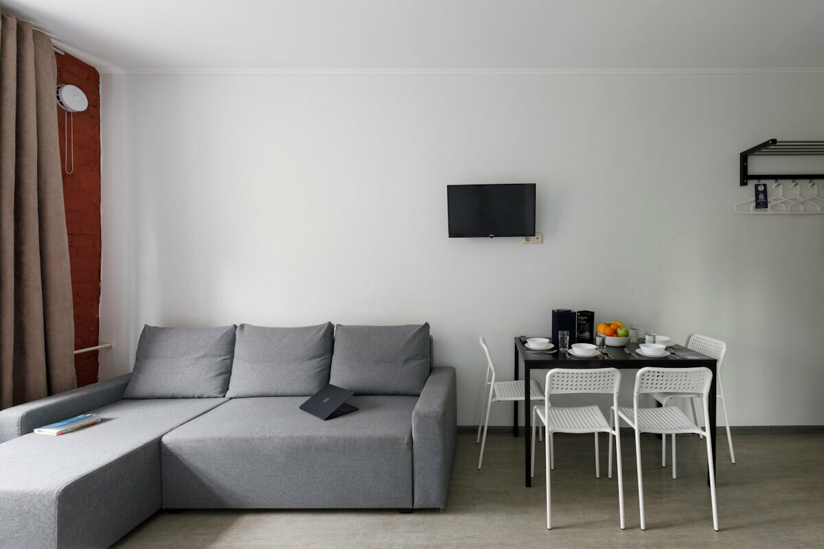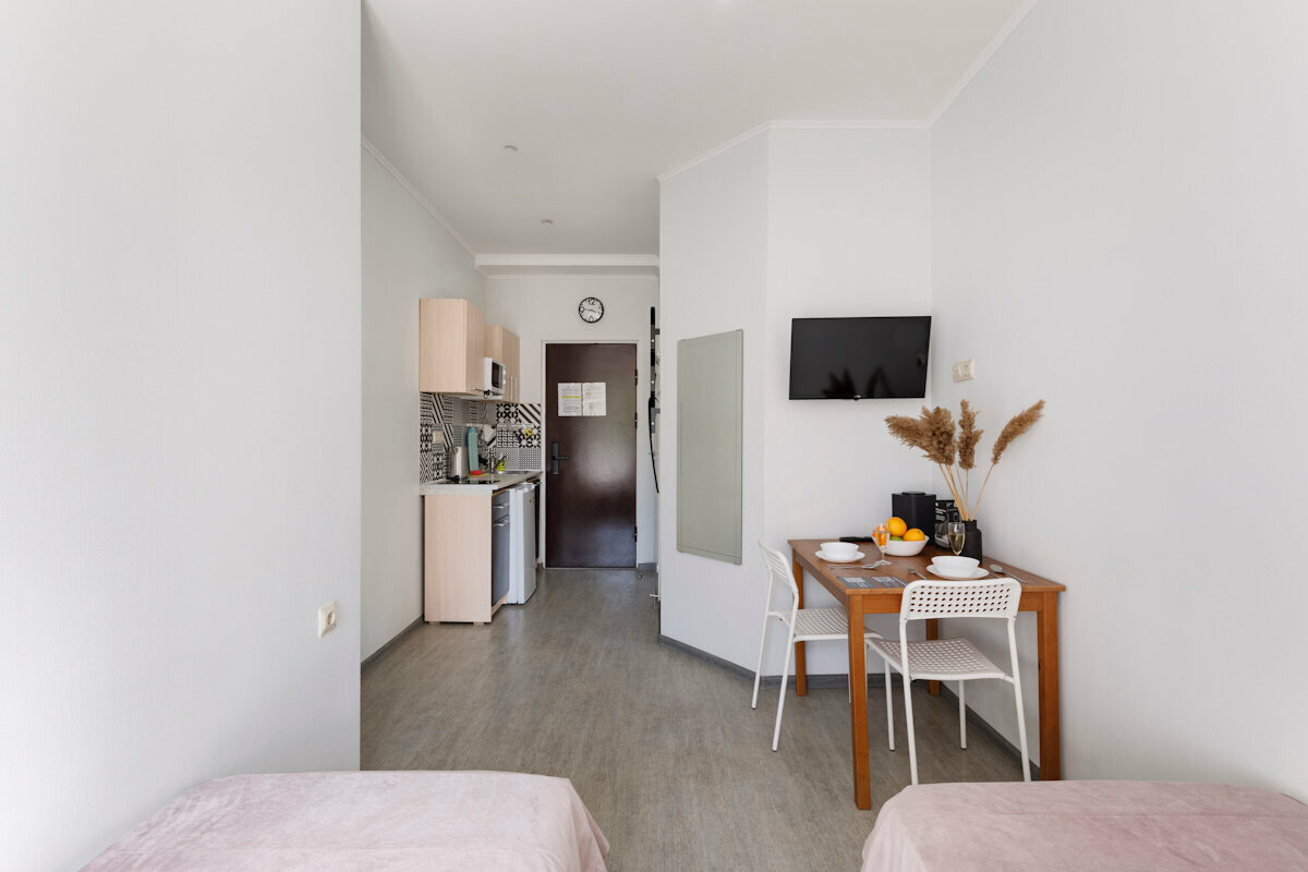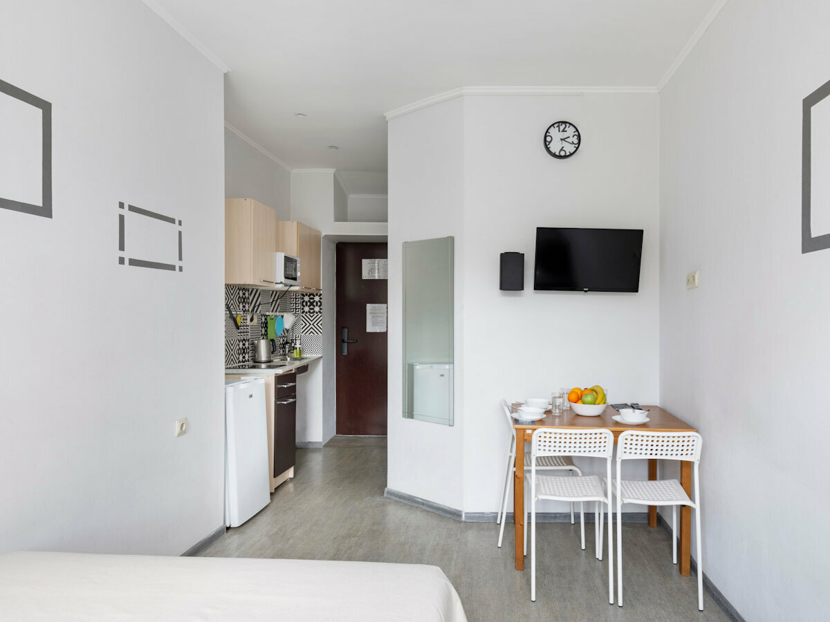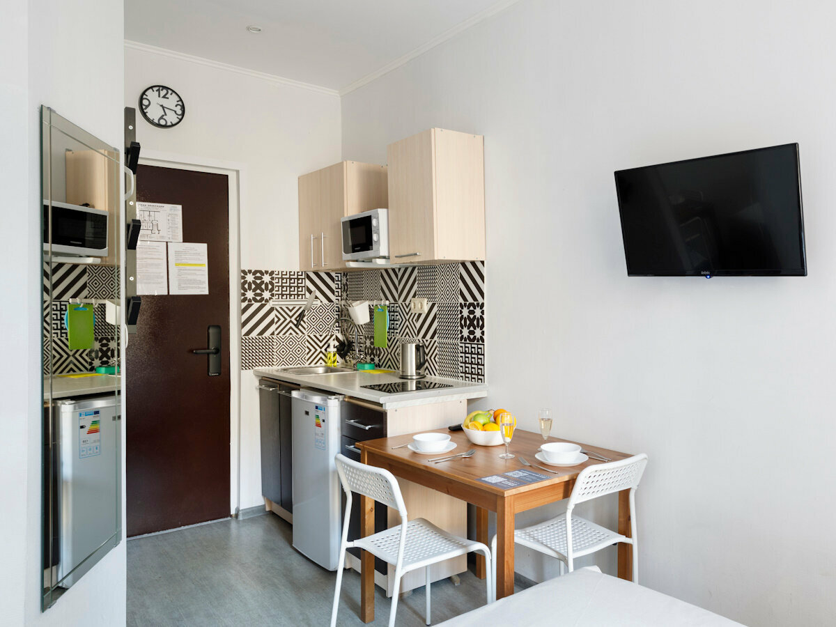 Очень удобное расположение гостиницы. Совсем рядом с Казанским Вокзалом (площадью трёх вокзалов). Место тихое, магазины рядом. Номер чистенький, бельё белоснежное, матрасы мягкие, как перина. В номере было всё необходимое : душ и туалет( горячая и холодная вода), кухня (плита, микроволновка, чайник, посуда, чай и кофе), телевизор, кондиционер, wi-fi, полотенца, тапочки. Работает бесконтактное заселение и оплата, очень быстро и удобно. Администраторы отвечают оперативно. Единственное, что смутило, так это ремонт на первом этаже, пыли, грязи и строительного мусора много. Но в остальном всё замечательно! Рекомендую