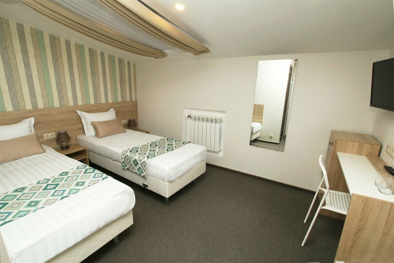 Площадь 17 кв. м., 3 кровати 80х200 см., душ, фен, ЖК-телевизор, бесплатный Wi-Fi. В отеле действует бесконтактное заселение по коду доступа в номер и с онлайн-регистрацией.
