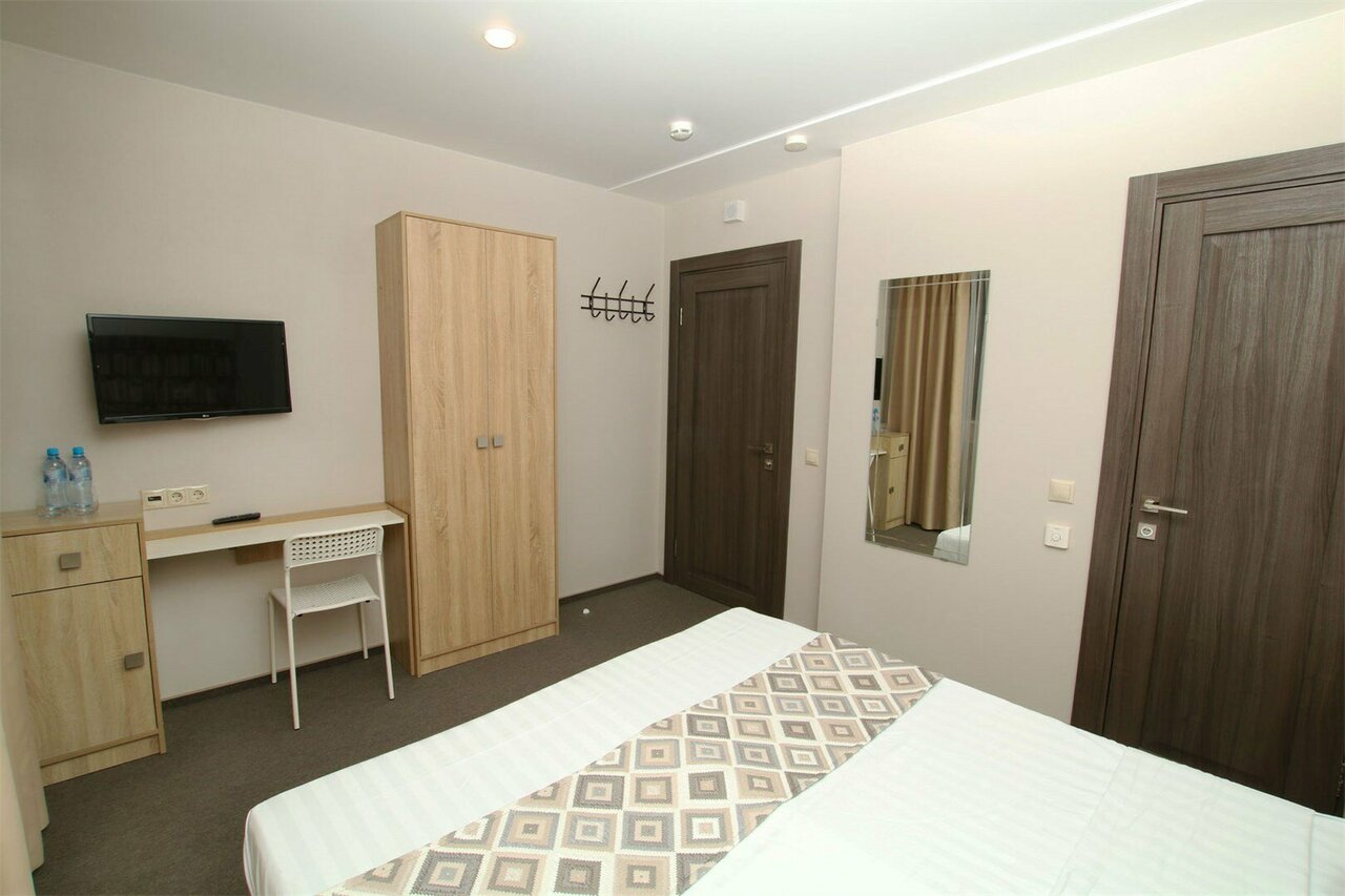 Площадь 16 кв. м, кровать 160х200 см, душ, фен, ЖК-телевизор, бесплатный Wi-Fi. В отеле действует бесконтактное заселение по коду доступа в номер и с онлайн-регистрацией.