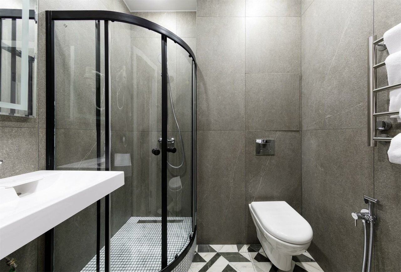 - Хороший напор в душе, стабильная горячая вода.