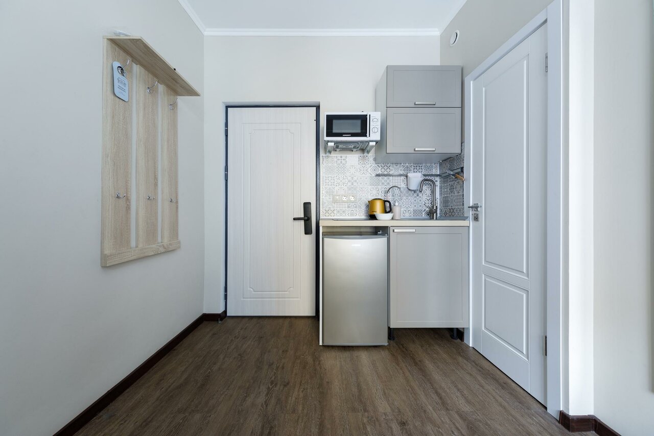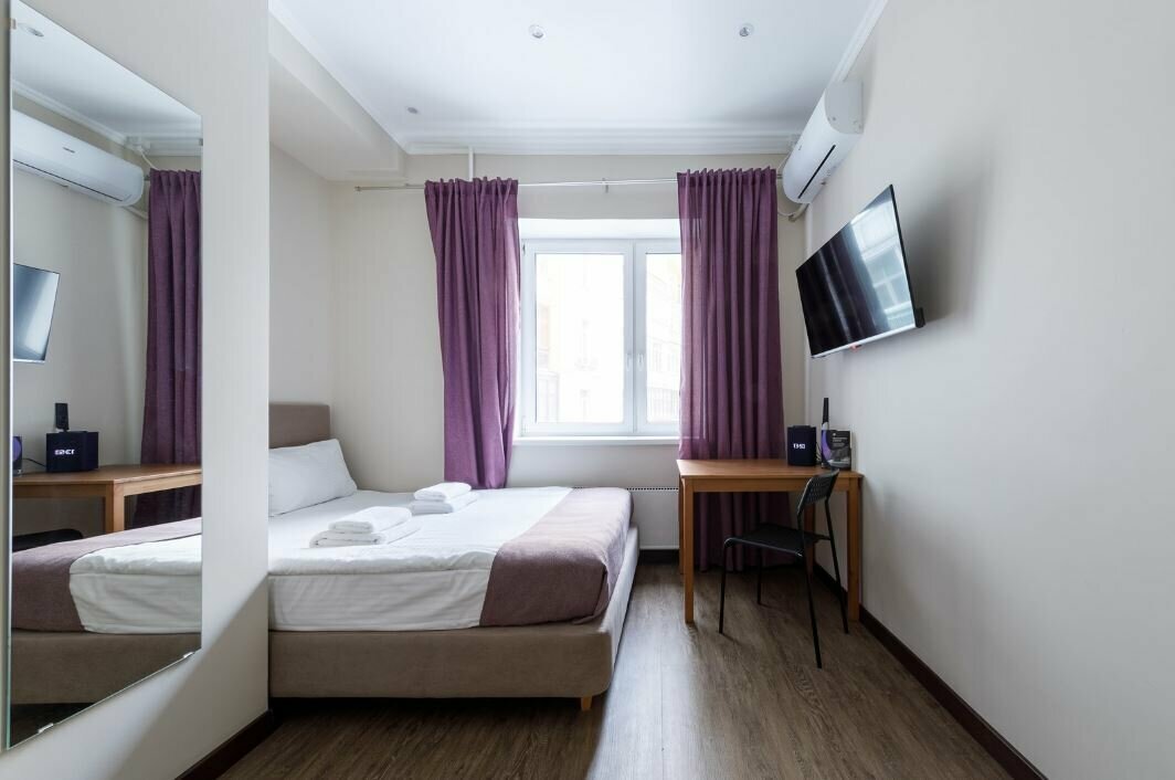 Мини кухня в номере, площадь 18 кв. м., кровать 160х200 см., душ, фен, ЖК-телевизор, бесплатный Wi-Fi, кондиционер. В отеле действует бесконтактное заселение по коду доступа в номер и с онлайн-регистрацией.