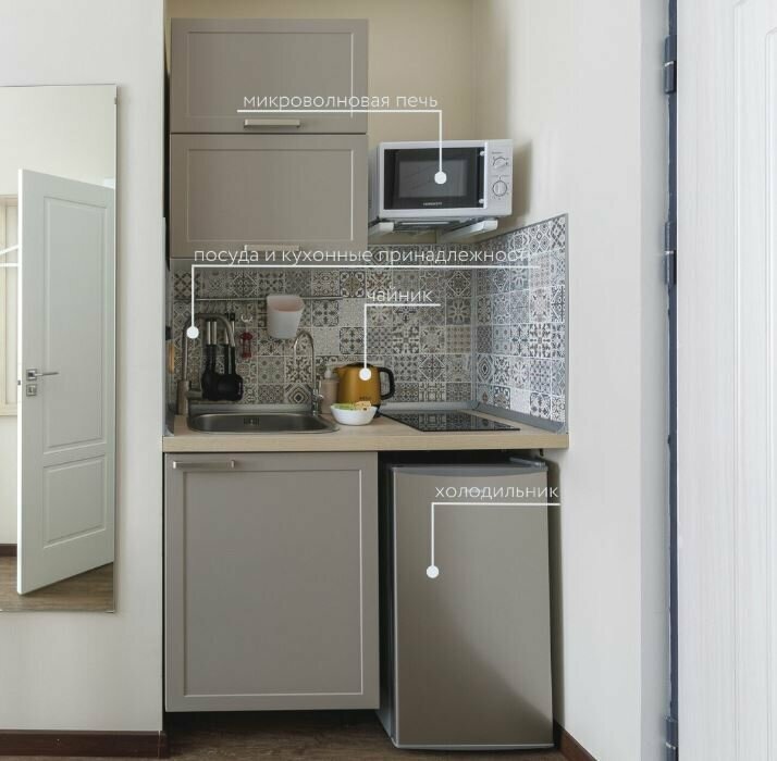 - Наличие всей необходимой техники (чайник, плита, холодильник, кофемашина)