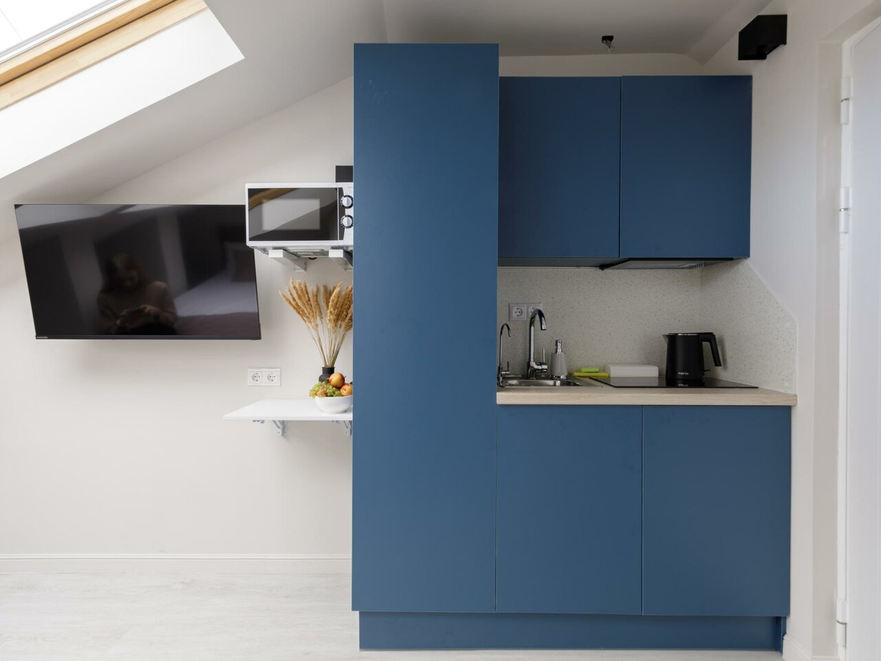 Комфортная Мини Студия с кухонным уголком, ванной комнатой, кондиционером и всеми необходимыми удобствами. Без окна. В отеле действует бесконтактное заселение по коду доступа в номер и с онлайн-регистрацией.