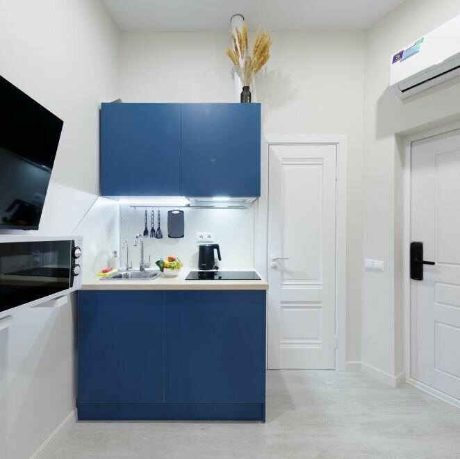 Комфортная Мини Студия для двухместного размещения с мини-кухней и всем необходимым оснащением, ванной комнатой, кондиционером и умной колонкой Алиса. Каждый номер оснащен электронным замком, доступ в номер осуществляется с использованием индивиду...