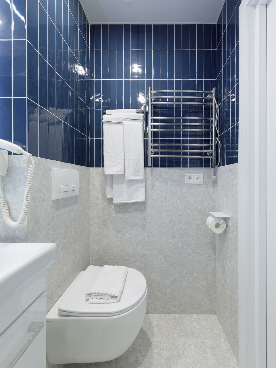 - Хорошее оснащение (фен, гигиенические принадлежности, прачка).