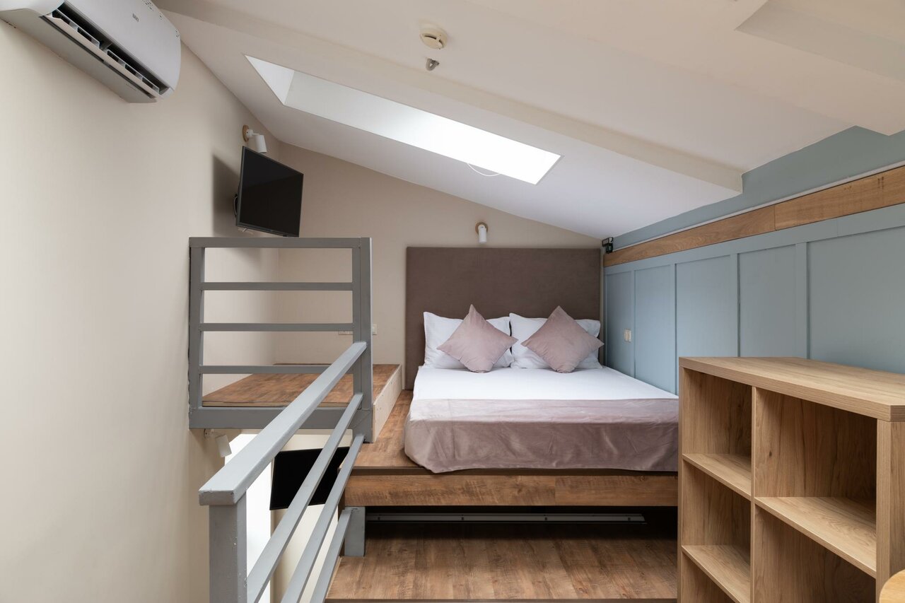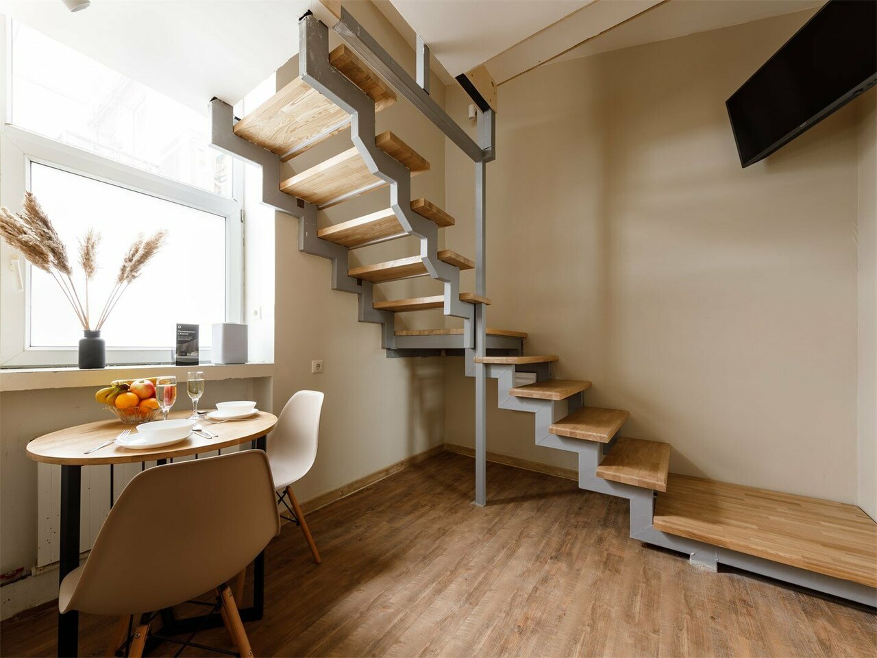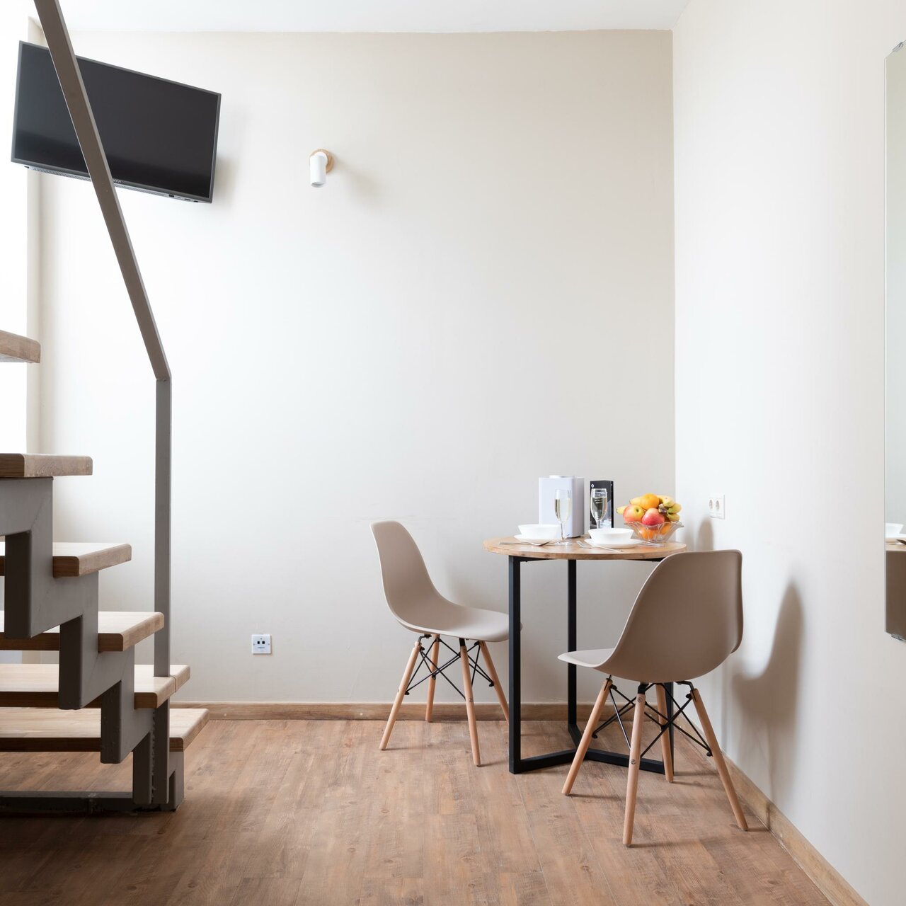 Апартаменты новые, месторасположение отличное. Вроде центр, но тихий. Совершенно не мешало, то что окна на первом этаже и расположены низко. Двор тихий. Просьба к руководству, лампочку на крыльце включите. Приехали поздно вечером, еле нашли, пришлось звонить. Не хватает посуды. Порадовала колонка Алиса. Я себе такую сразу же захотела. Рекомендую. В номере вроде не большая площадь, но вполне все разумно расставлено.