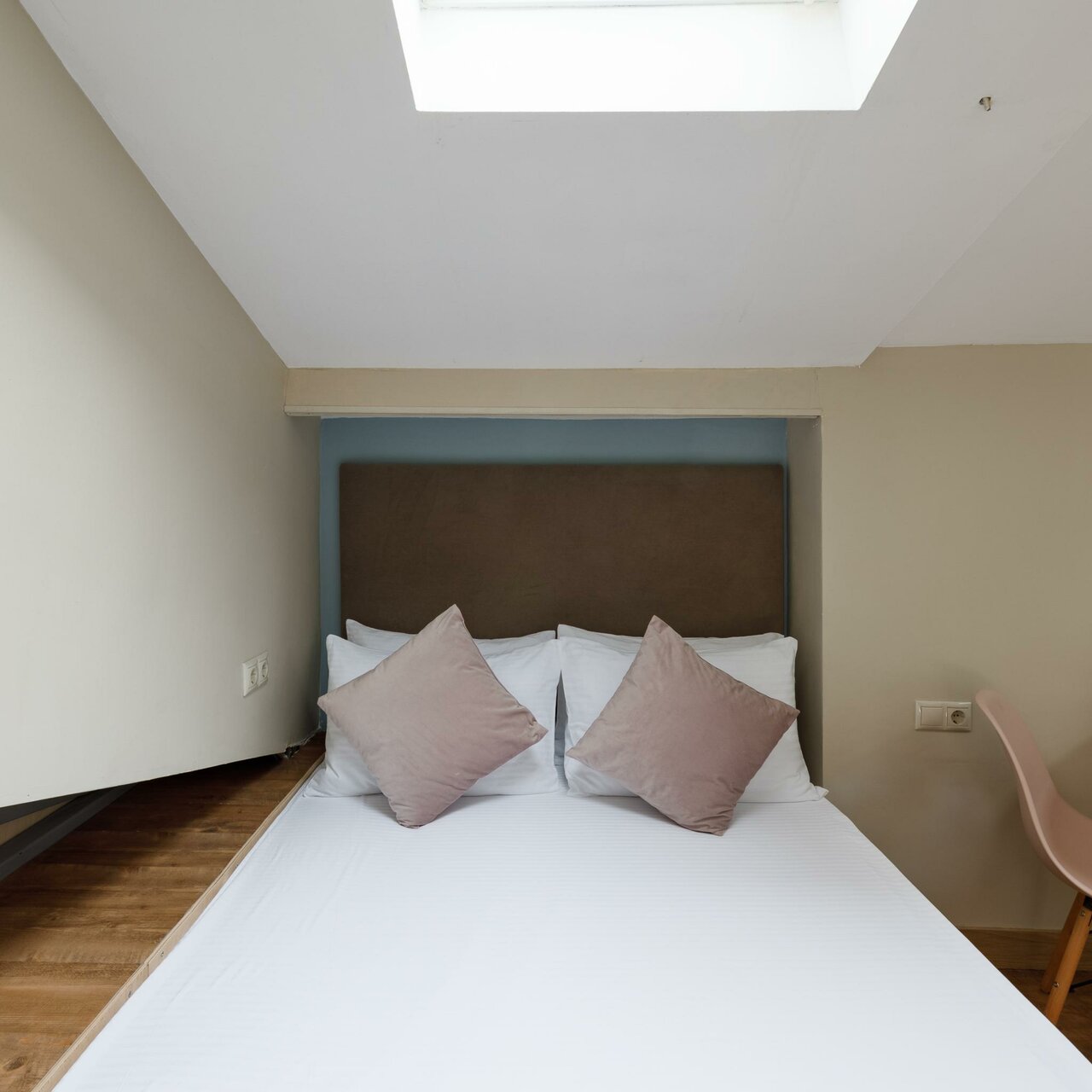 Потрясающая гостиница!от метро недалеко,но чуть за углом во двое,и благодаря этому тишина.рядом вкусвилл,несколько кафе и пекарен,даже в воскресенье без проблем позавтракали в восемь Вход нашли легко. Заселение бесконтактное,все без проблем получилось. Номер двухэтажный брали,под день рождения решила себя побаловать. Очень понравился! Белоснежное белье и Полотенца,очень интересные халатики,подошли как мне на 48 размер,так и 10летней дочке) на что я сразу обратила внимание-чистая шторка в душе,свежие тряпочки для стола и посуды. А из пожеланий-второе одеяло или плед,не всем удобно под одним спать. И не помешает шторка на окне между этажами в номере-оно как раз напротив кровати и при включённом свете есть ощущение аквариума,подозреваю,что нас было очень хорошо видно. А в целом-обязательно вернусь ещё!