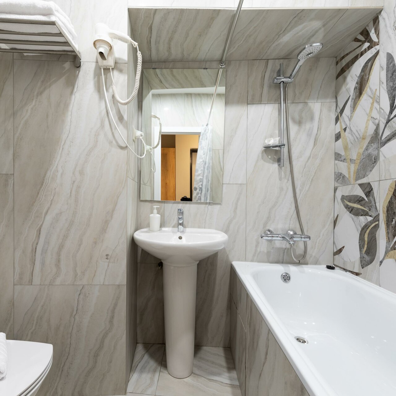 Неплохой отель, удобное расположение, приятный ремонт, НО В номер так и не предоставили тапочки, стены картонные и из ванной был неприятный запах канализации.