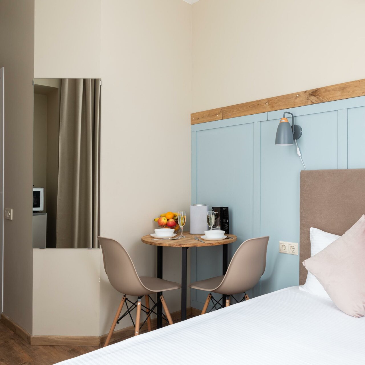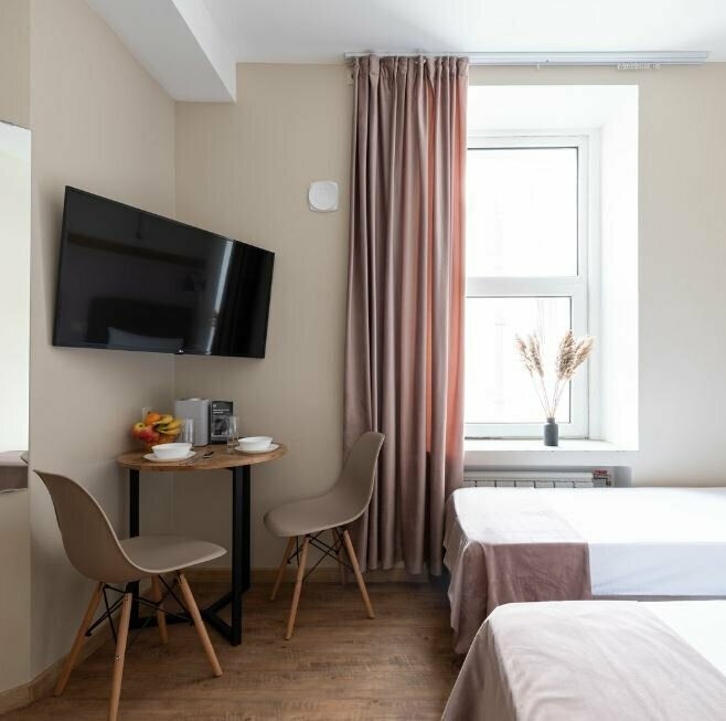 Бронировали отель в январские праздники, ни разу не пожалели, что остановились именно здесь! Бесконтактный заезд, если приезжаете раньше, то есть возможность оставить вещи в цокольном помещении, где также есть столики, куллер, чай, уборная, и можно привести себя в порядок после пребывания, пока ожидаете заселения в номер Удобное месторасположение отеля, чистый номер с современным интерьером, оборудованный телевизором, колонкой Алисой, кухней и всеми необходимыми приборами) Есть уборка номера, что очень приятно! И доброжелательный персонал) Номер был на 2м этаже. Связь с отелем на протяжении всего времени поддерживали по WhatsApp, отвечали на все вопросы. Благодарим за качество предоставленных услуг и комфорт!