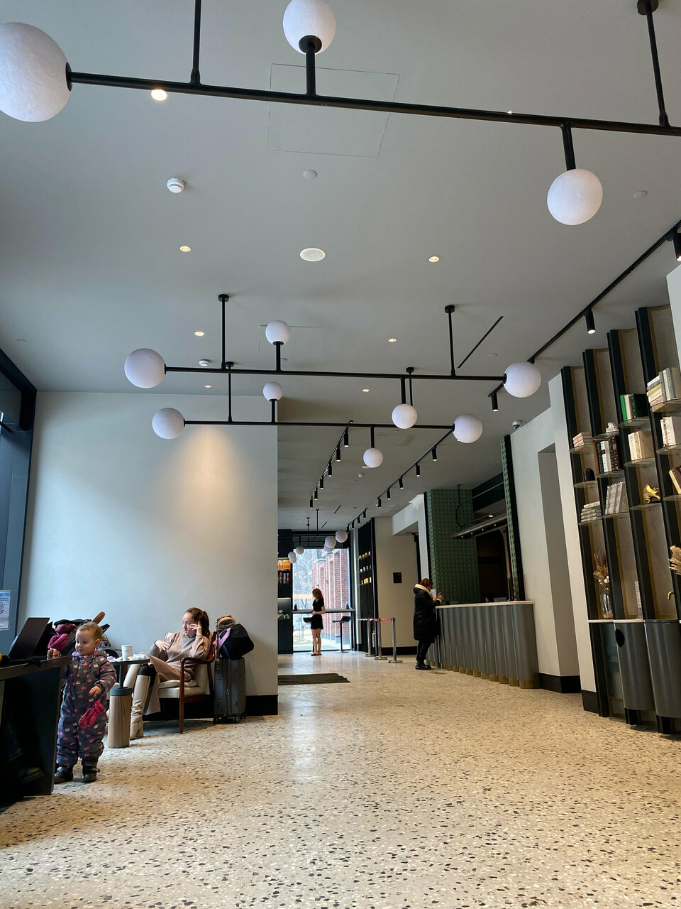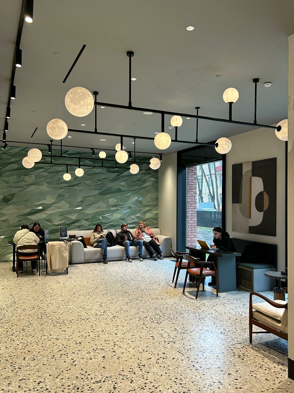 - Красивый холл и кофейня в здании.