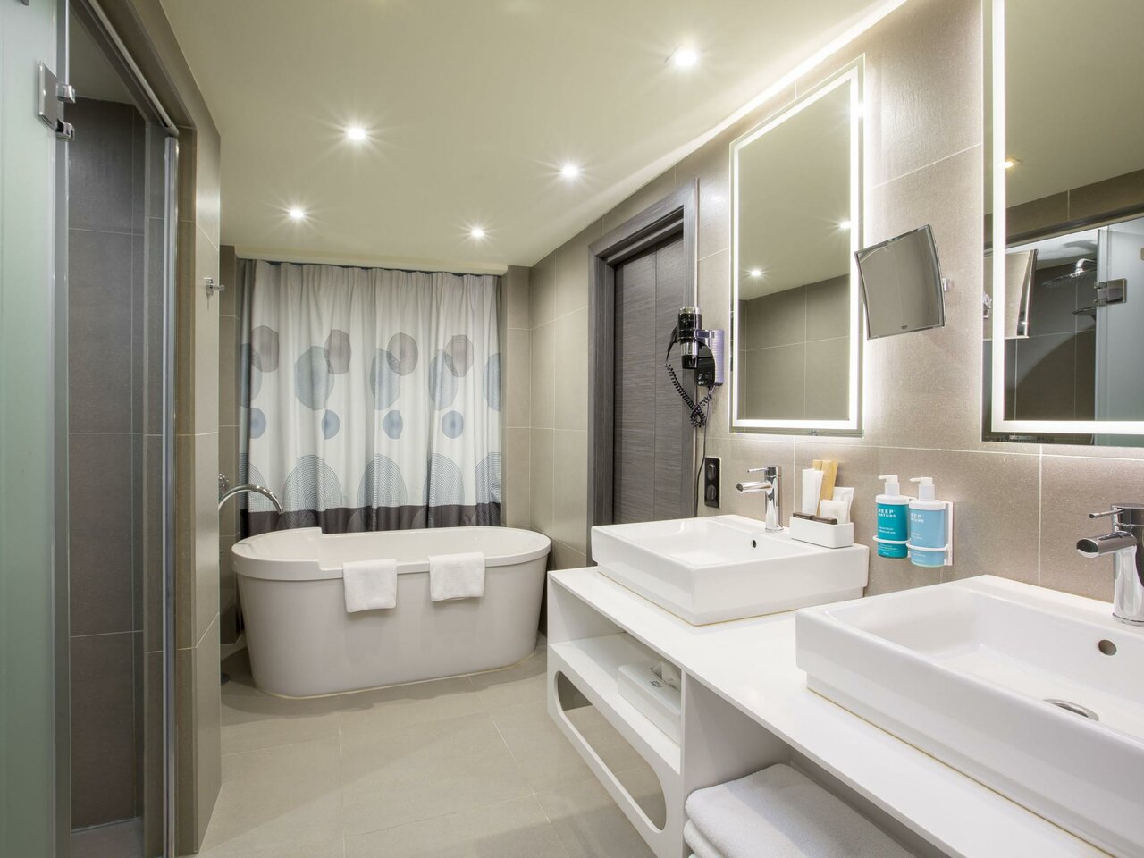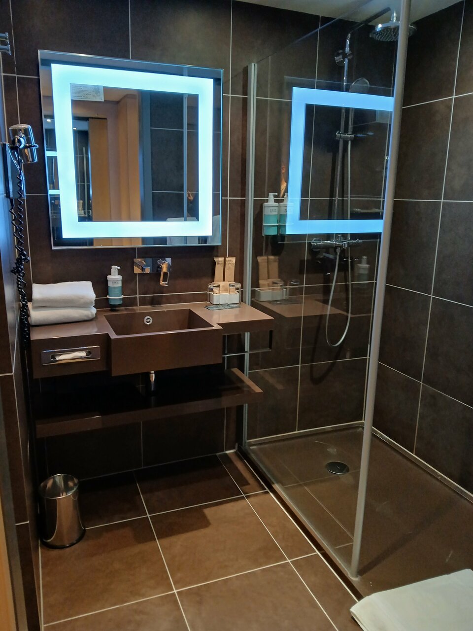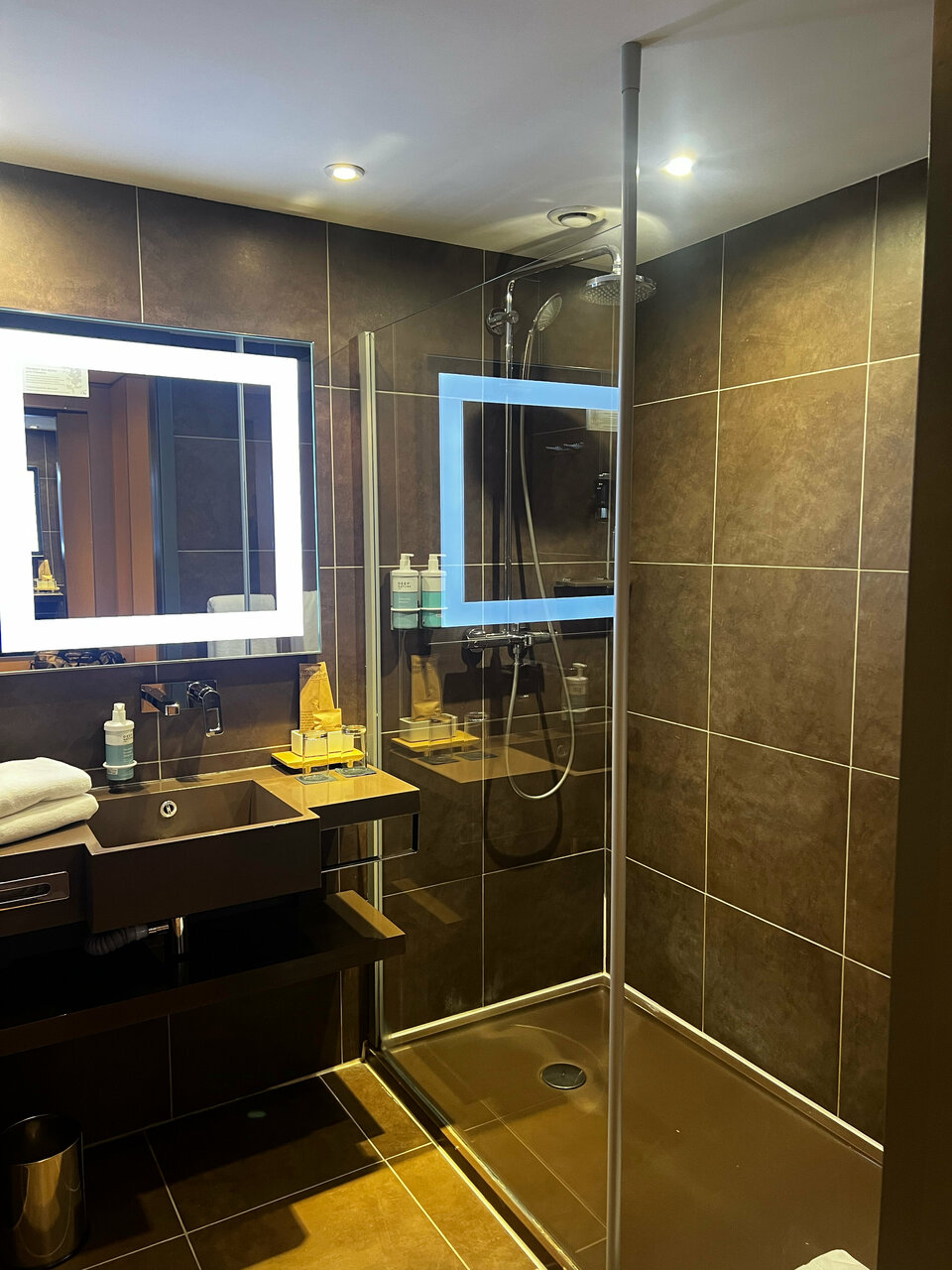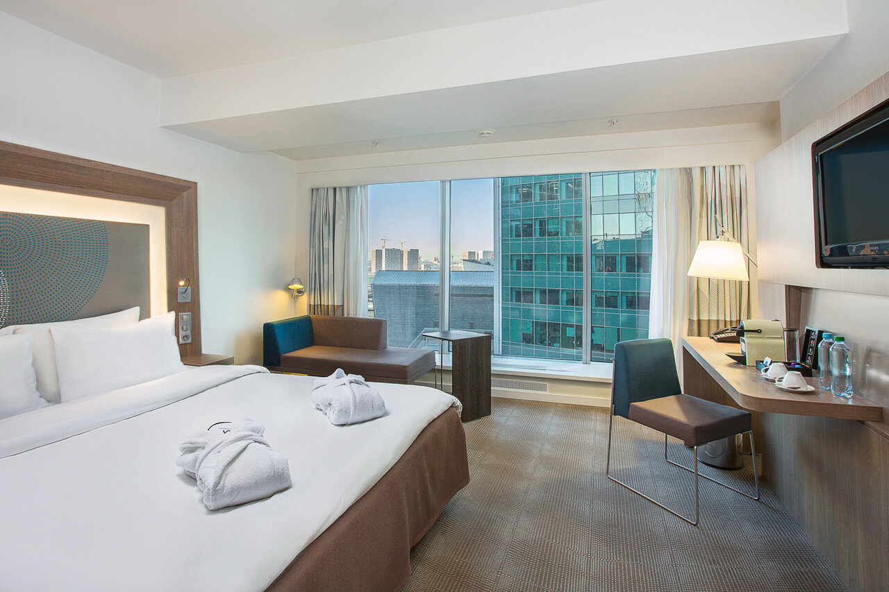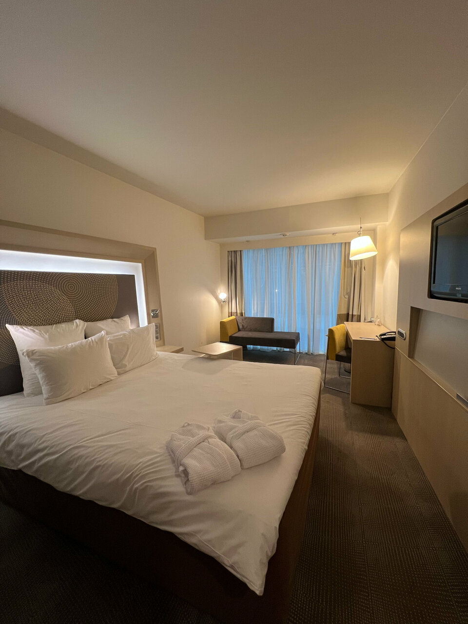 Отличный отель в очень красивом месте! Останавливались в нем 2 раза. Прекрасные номера, удобные постели, бесплатный минибар (жили в сьютах), кофемашина. Номер большой по площади, есть зона отдыха, огромная ванная комната. В номере есть все необходимые мелочи, халаты, тапки, утюг и гладильная доска, зонт. По звонку принесли ведёрко для шампанского со льдом, фужеры. Жили на 6 этаже в первый раз, во второй- на 8. Вид на башни. Очень красиво!