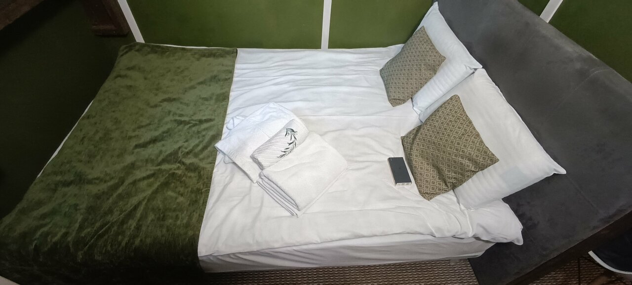 Уникальное предложение для путешествующих с большим количеством багажа, ручной клади или вещей.В номере одна большая двуспальная кровать с подъемным механизмом, мягким изголовьем и боковыми частями.
