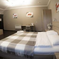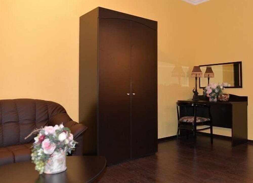 Большой номер оснащен: Двуспальной кроватью, Кондиционером, Рабочим столом, Диваном, Шкаф/гардероб, Фен, Халат, Бесплатные туалетные принадлежности, Тапочки, Телефон, , Кабельные каналы, Телевизор с плоским экраном, Холодильник, Электрический чайник,