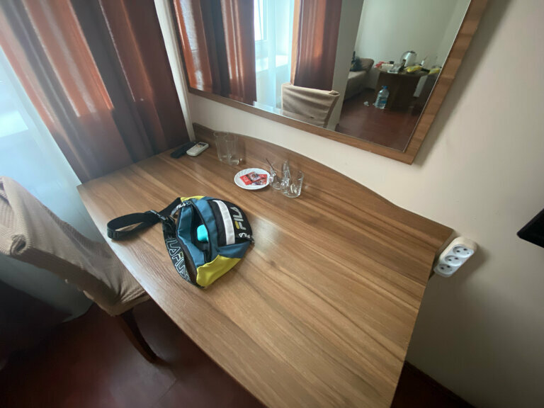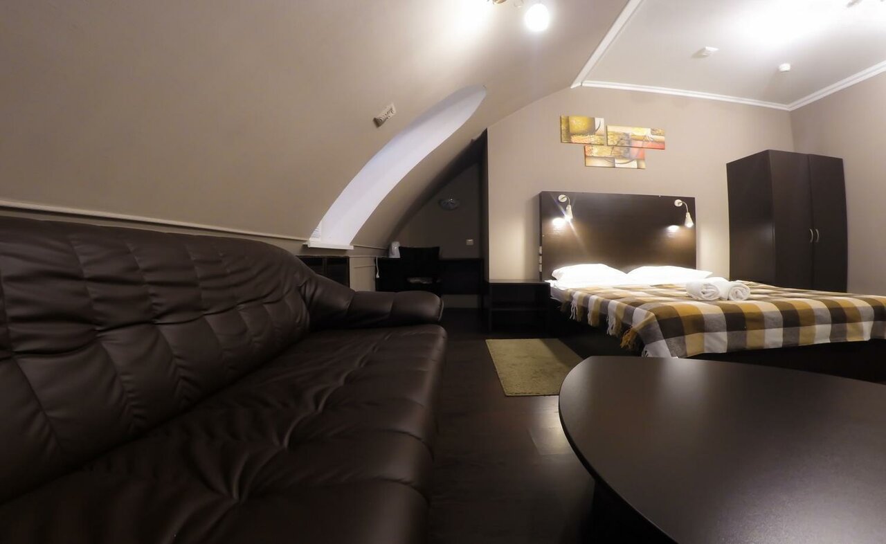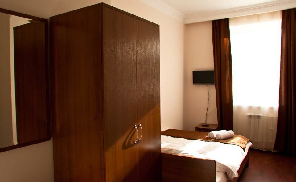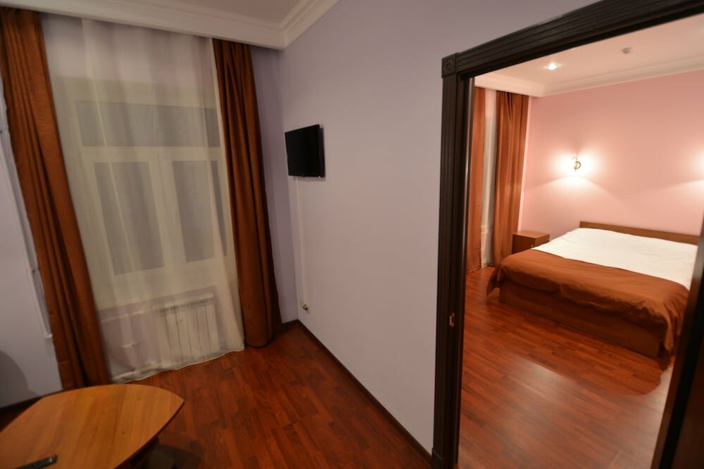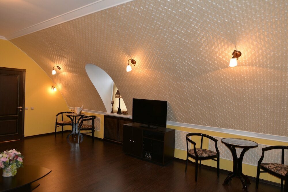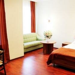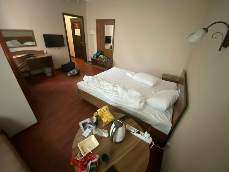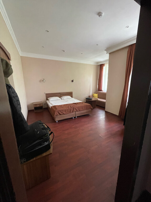 В номере люкс ужасный запах канализации, отваливаются обои, розетки искрят. В номере грязно, пыльно, пол даже не подметается, я уж молчу о том сколько раз в год его вообще моют. Ужасная душевая: вода не сливается, боялась затопить нижний этаж, нет вентиляции. Для такой гостиницы даже одна звезда это очень много.