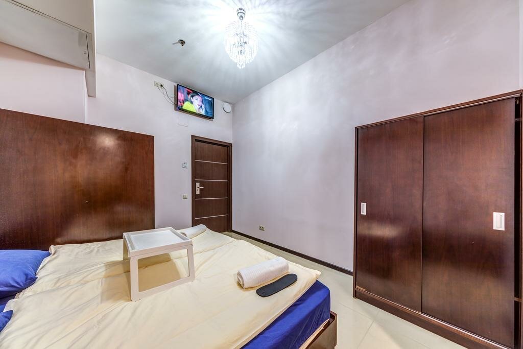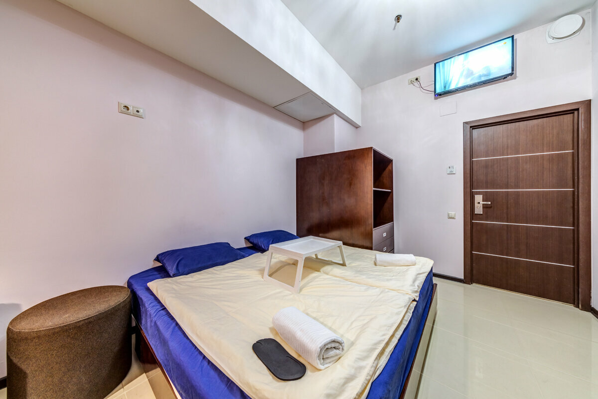 Не гостиница а хостел, я б сказала ночлежка. Да, цена ниже среднего, но и за такие деньги можно найти лучше, расположение в какой то промышленной зоне, в подвале, в описании указан кондиционер, по факту его нет, как и окон. Спасает что все таки подвал попрохладнее. Толи плесень толи грибок на стенах, ‘позабавило’ объявление в санузле ‘в толчок не бросать…’, берут депозит 2000 сверх цены на случай штрафа за курение что с самого начала изрядно подпортило впечатление. Еще и оплата заранее которая не возвращается, то есть ты оплатил приехал максимально разочаровался но заселился так как деньги тебе никто не вернет.