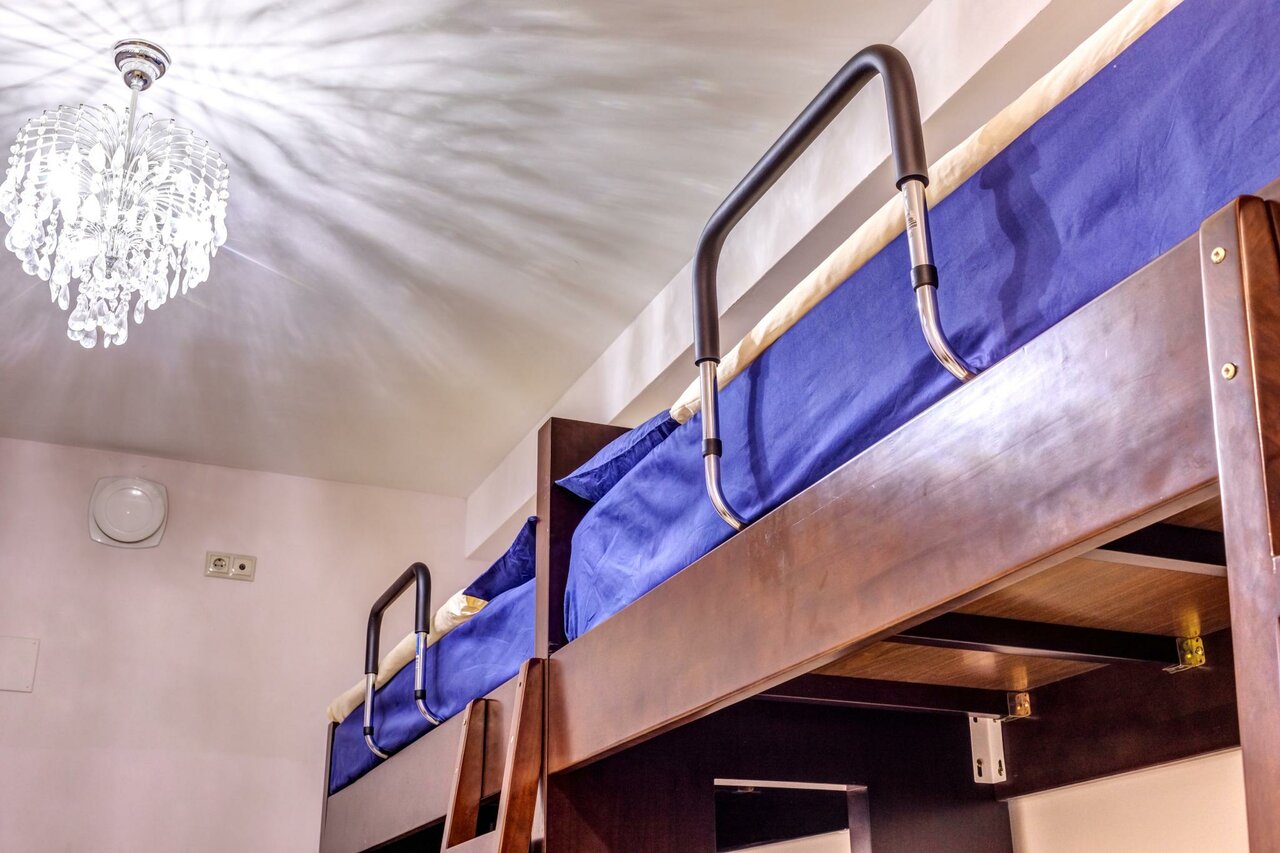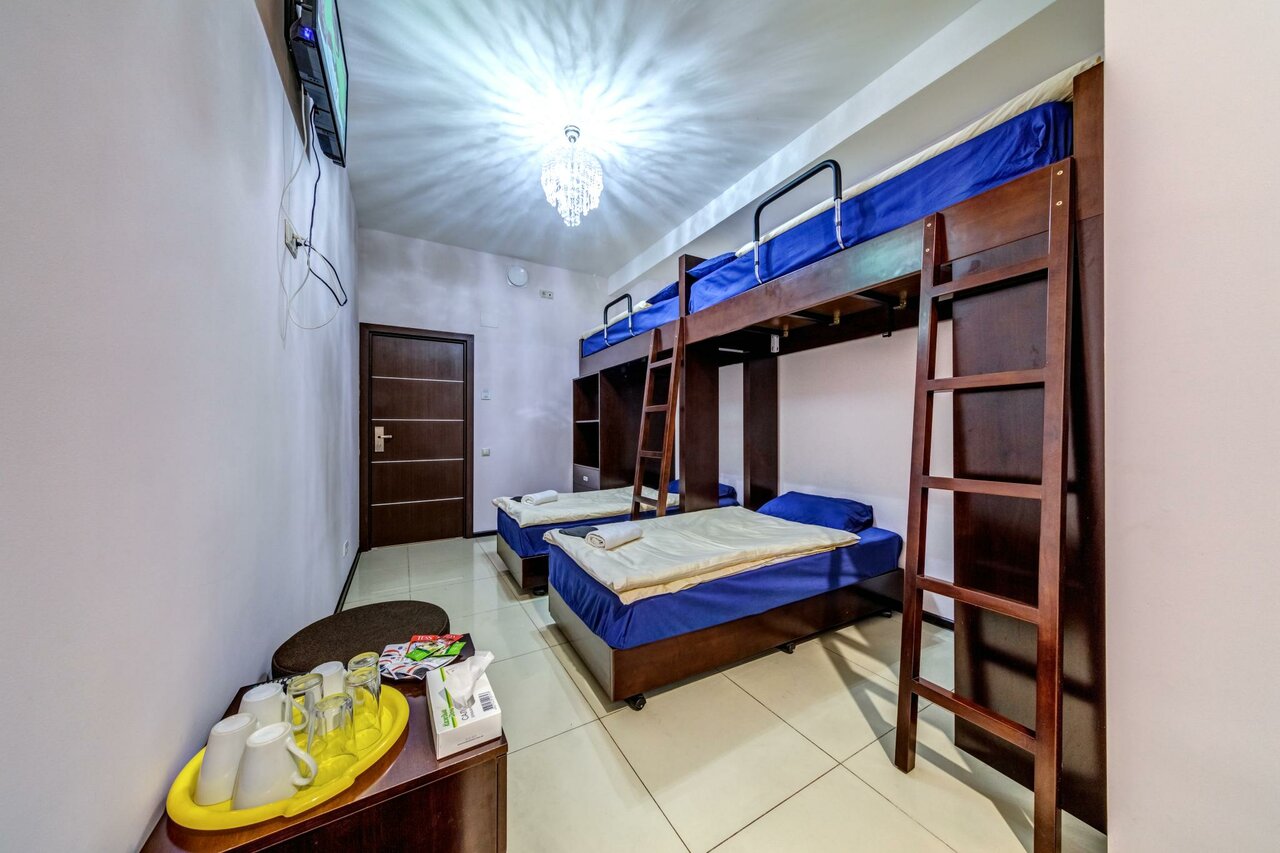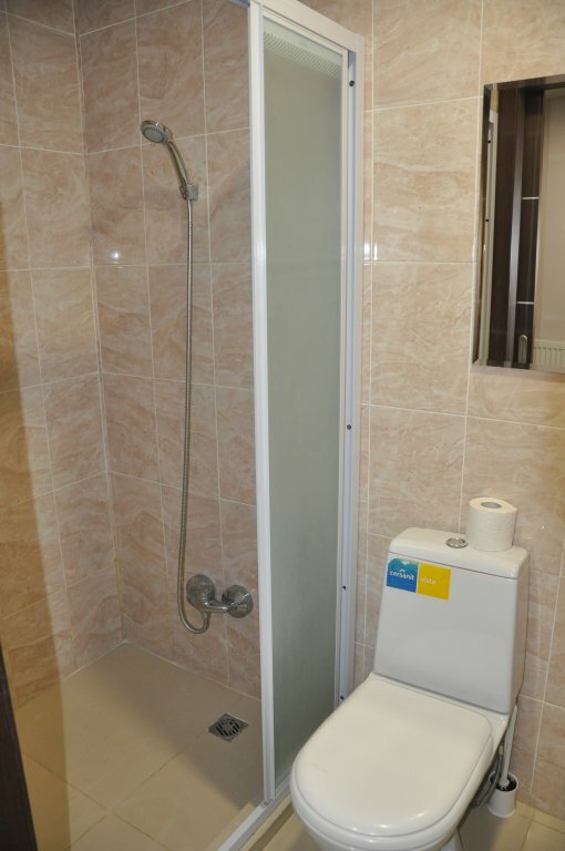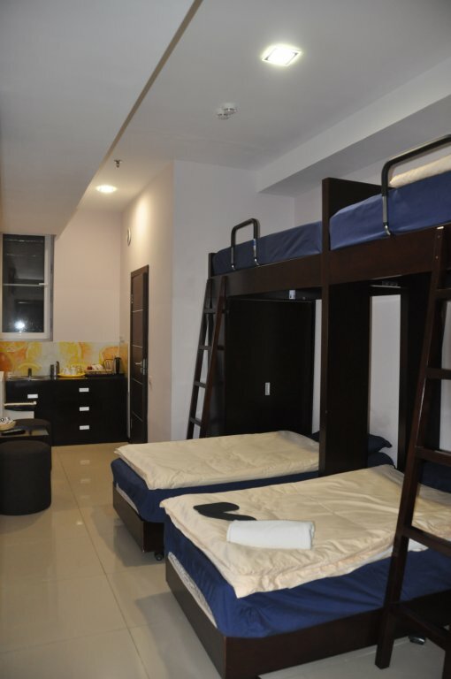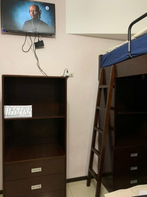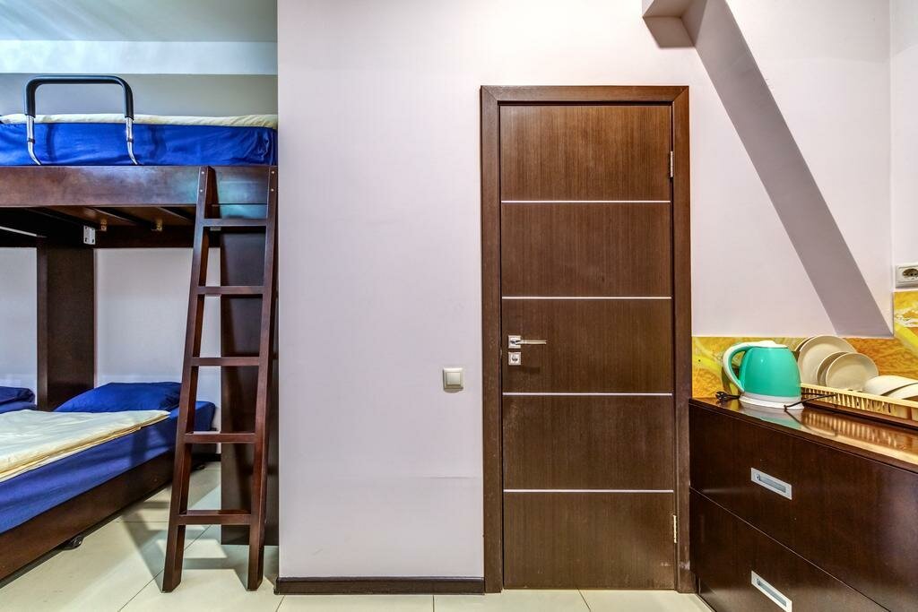 Неудобно подниматься на верхний ярус кровати, если на первом то все хорошо, душ туалет в комнате, так же есть холодильник маленький, микроволновка и чайник