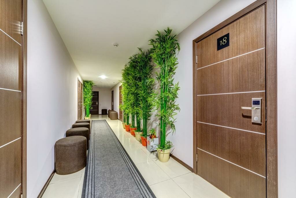 Отличный отель , в спокойном районе , приветливый персонал. Есть кухня , сан-узел в номере, минус только что нет окон , но если приезжать в зимнее время, погулять , когда холод , и кругом снег, то можно и потерпеть. В целом остались довольны