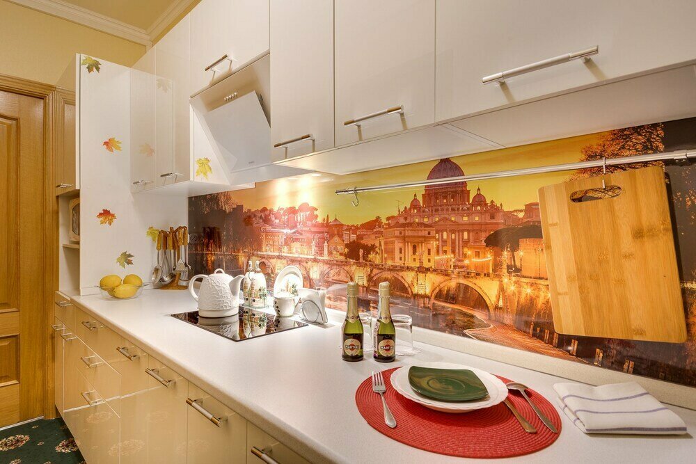 Удобное расположение, рядом с метро. Рядом продуктовые магазины. Отдельные комнаты, много кроватей ( 5) . Отдельная полноценная кухня с посудой. Хотелось бы чтобы соль, сахар, масло, чай были, но этого нет.
