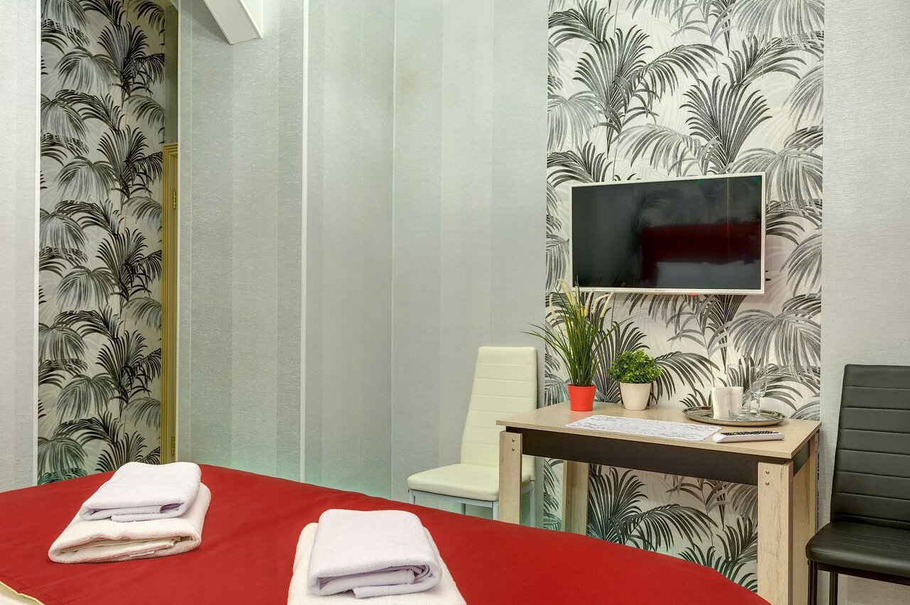 При заселении выяснилось, что номер не убран, начали убирать при нас, что заняло минут 15… По факту только поменяли постельное ( хотя и тут сомнение, что его вообще меняли, с дырками от сигарет , с пятнами и волосами) и положили гигиенические принадлежности. Пол был грязный, как и другие поверхности в номере, благо дали тапочки. Телевизор оставляет желать лучшего, холодильника и микроволновки в номере не было, только не общей кухне. Стены тонкие, невзначай становились свидетелями за дверьми бранной ругани сотрудников отеля. Проживали 3 ночи, за всё время ни разу не зашли с уборкой! Едкий запах сигарет пронизывает воздух абсолютно везде, для нас некурящих было невыносимо, однако не было времени искать другой отель. Больше здесь останавливаться не будем, данный отель подойдет для личных встреч на ночь, но не более.