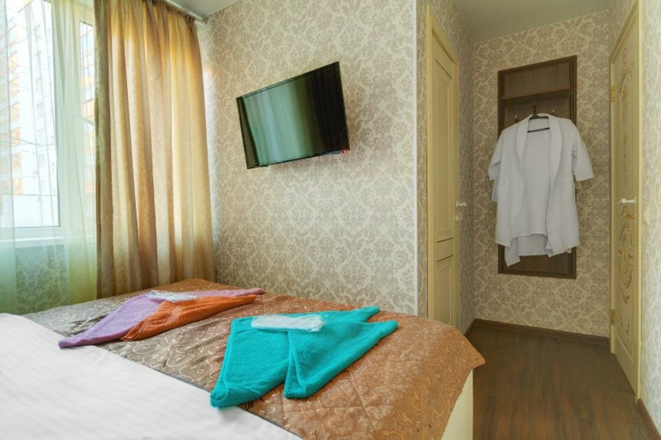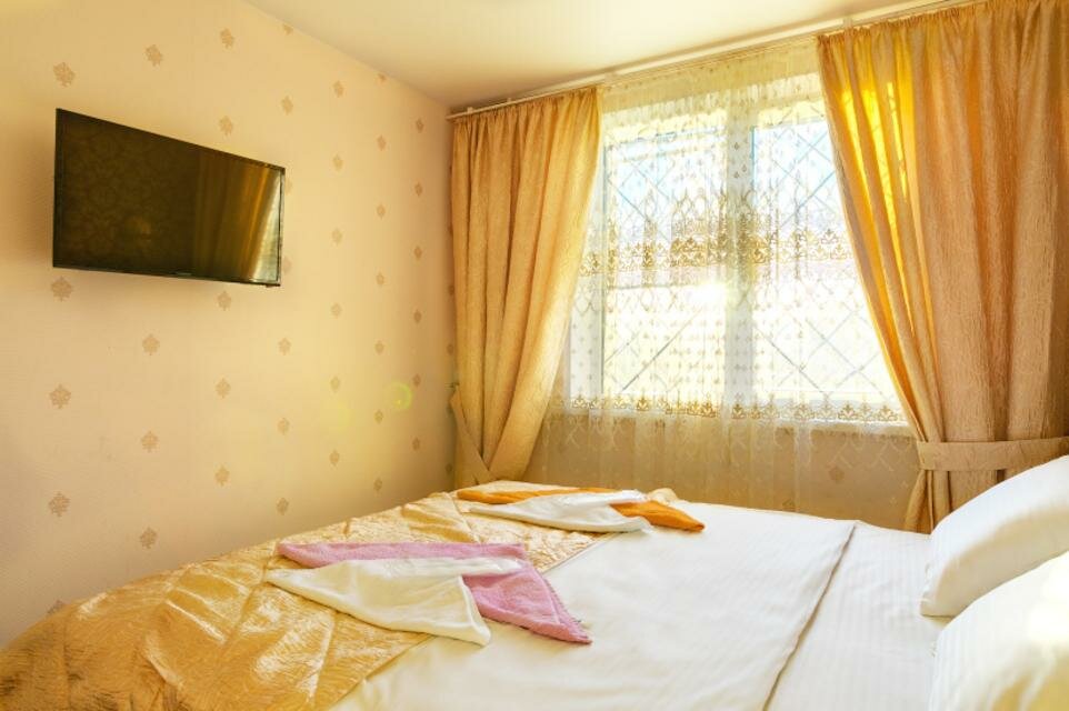 Во Всех номерах есть телевизор, халаты, тапочки, средство для купания.