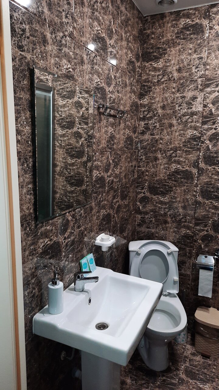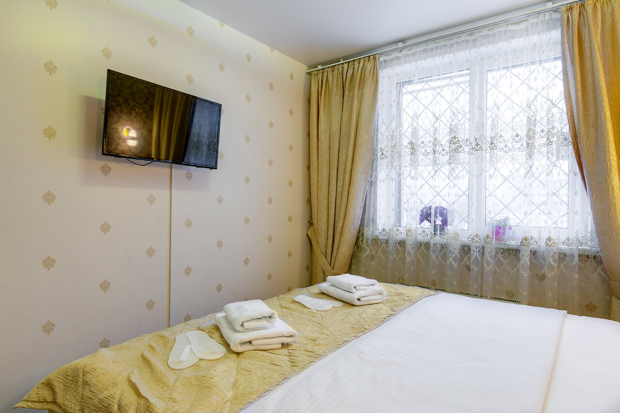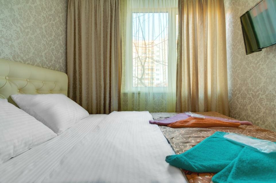 Ставлю 4звёзды, но за эту ночь, хочется поставить все 2 Я понимаю, что отель не люкс качества, но все же. Администратор женщина возрасте, очень добрая. Сам отель, миленький, маленький. Есть холодильник. Но! Нет никакой питьевой воды — покупайте в магазине. Номер был эконом. Летом безумно жарко, дверь ночью была открыта. Маленькая простынь, диван весь скрипит, пружины все убиты, спать было очень не удобно. Всю ночь администратор кашлял, орала какая-то сирена. Душ открывается плохо, вода бьет в разные стороны, но! Очень большой плюс, есть зубная паста с щеткой + шампунь и гель. Я понимаю, что номер эконом, но можно сделать пару штрихов и добить номер до хорошего состояния. Очень прошу хозяина, поставить для людей Кулер. В целом, эконом стоит своих денег. Расположение отеля удобное от метро, кто едет на оптовый рынок — самое то.