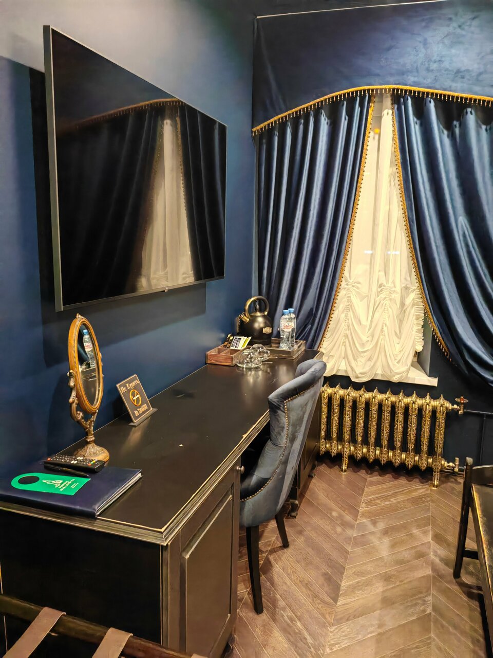 Очень атмосферная гостиница!!! Долго описывать, но лучше убедиться самому Персонал, интерьер, атмосфера Как будто попали на машине времени на сотни лет назад Очень красивые номера. Чисто ,уютно, тихо( просто пипец как тихо) хол, горничные .. ресепшен, бар все переносит в те времена. Очень замечательная гостиница Чистота на высоте! Спасибо большое!!!