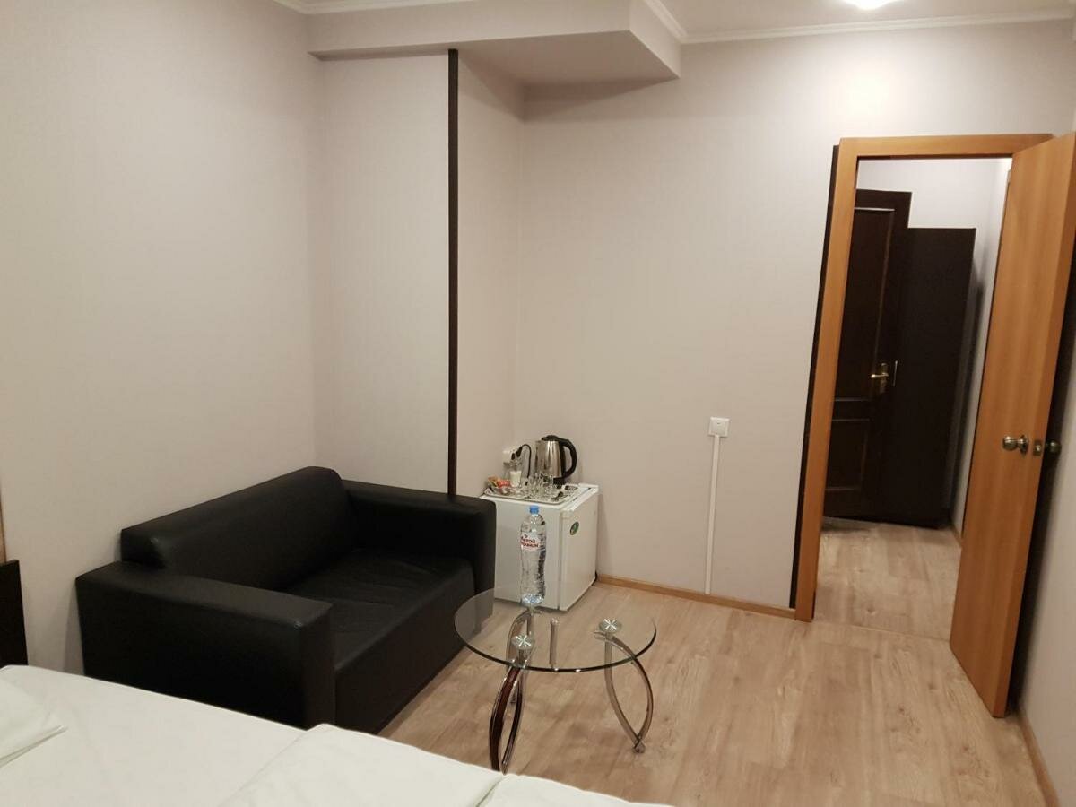 В целом всё хорошо , чисто ) Кондиционер бы еще. А так. В номере есть холодильник. Чайник. Чай кофе ) И уборная) приятный отель ввели бы систему скидок на несколько дней было бы замечательно))