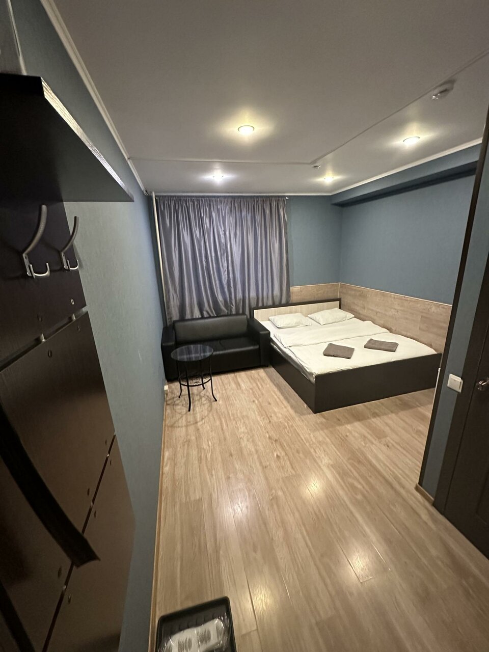 Чисто, быстрое заселение и выселение. Всё необходимое есть, чай, кофе, вода питьевая, мыло, гель для душа и тд. Вода тёпленькая хорошо идёт, чистое постельное белье.