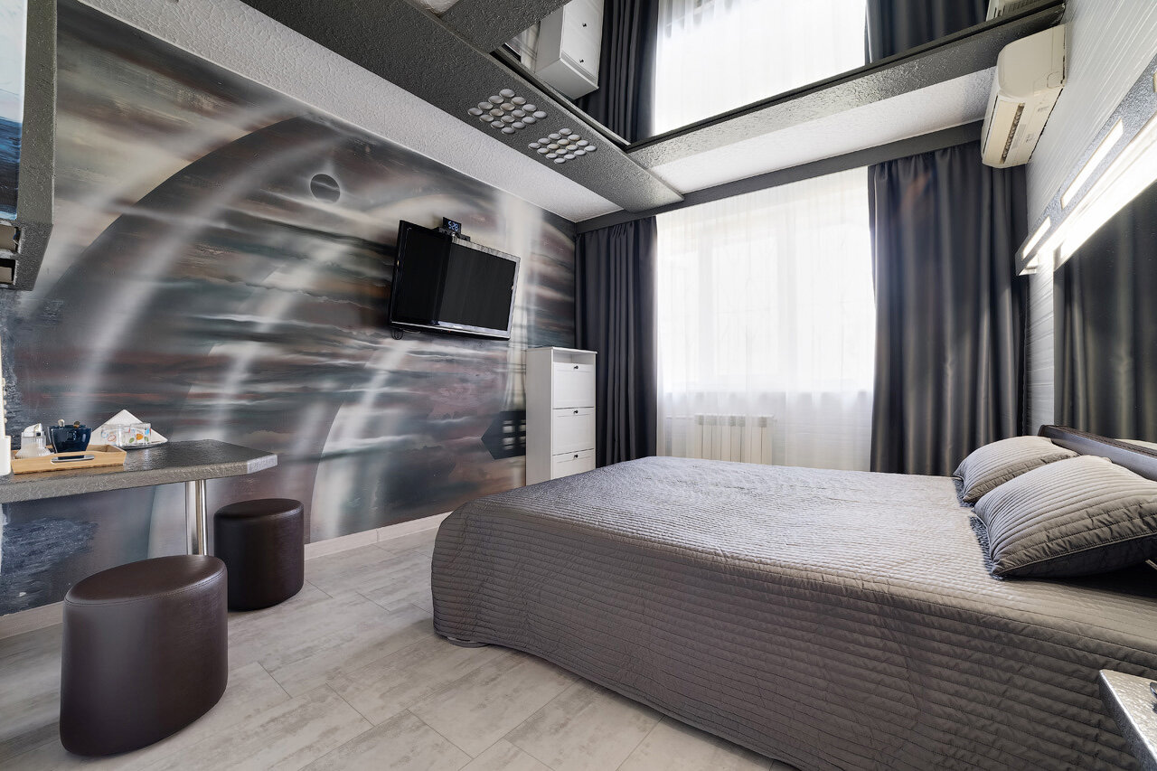 Были здесь с мужем. Очень понравился интерьер. Все компактно, уютно, чисто. Администратор очень приветливая и вежливая девушка. Понравилось зеркало в номере на потолке. Необычно, добавляет изюминки.