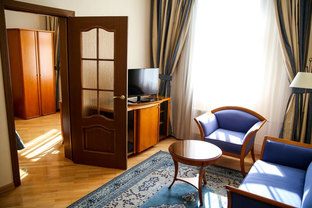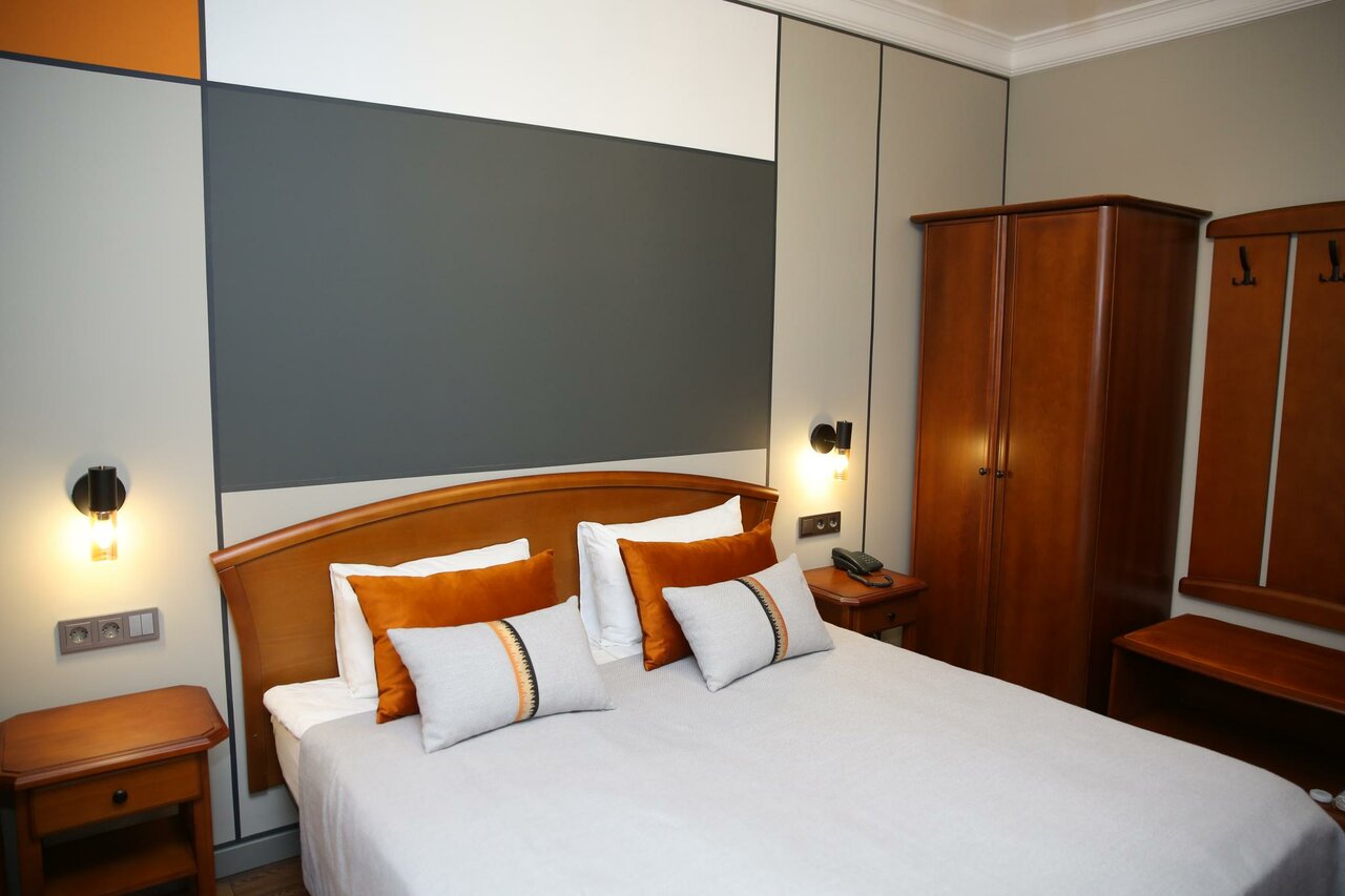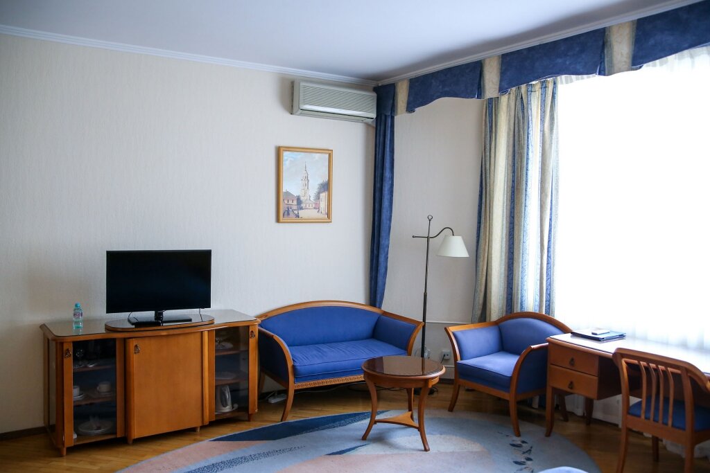 Удобства: — Номера с кондиционером, Wi-Fi, ТВ, мини-баром, сейфом, феном, чай/кофе. — Санузел в номере, халаты, тапочки, джакузи (в некоторых). — Бесплатная парковка, лифт, камера хранения, банкомат. — Ресторан, бар, конференц-зал, салон красоты, оздоровительный центр. — Трансфер, прачечная, химчистка, бизнес-центр.