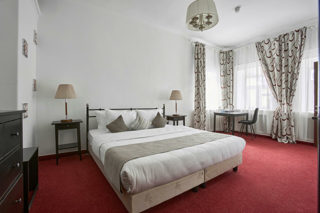 Хороший отель со своей историей. Приятный, понимающий персонал. Спокойная атмосфера. Расположение очень хорошее, недалеко от метро и в центре Москвы. Номера чистые без лишних предметов с хорошими кроватями и телевизорами.