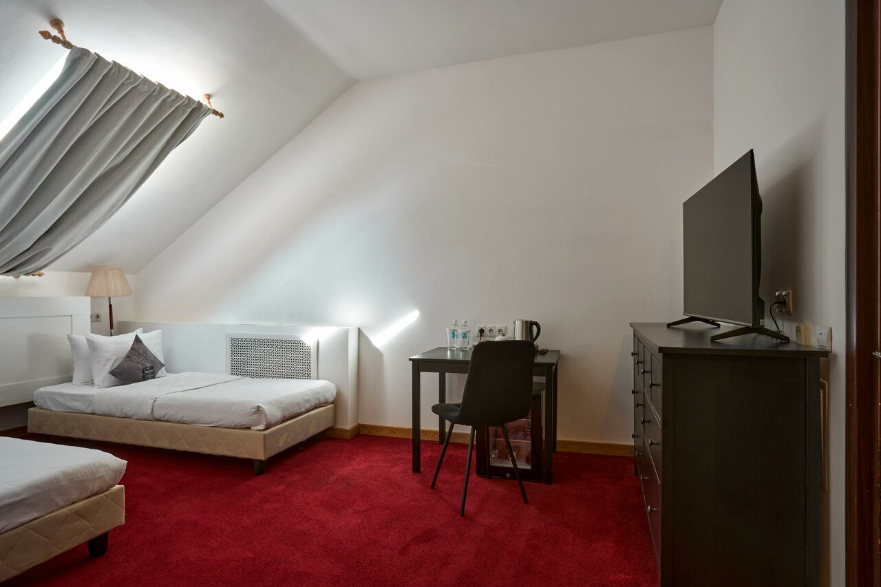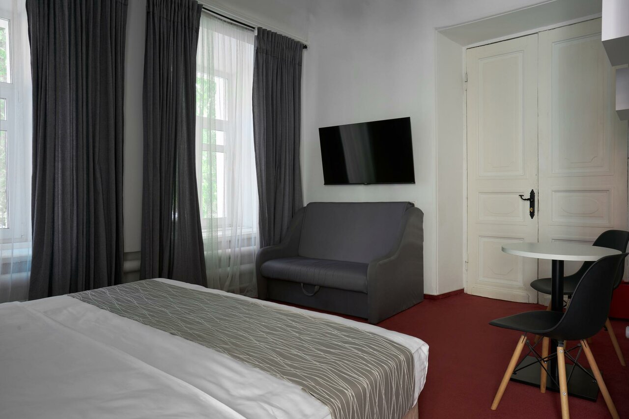 Просторный комфортный номер стандартной категории площадью 17 кв. м. для размещения одного, двоих или троих гостей. Оборудован кондиционером, LCD-телевизором, электронными замками, уютной мебелью, круглосуточным электронным консьержем.