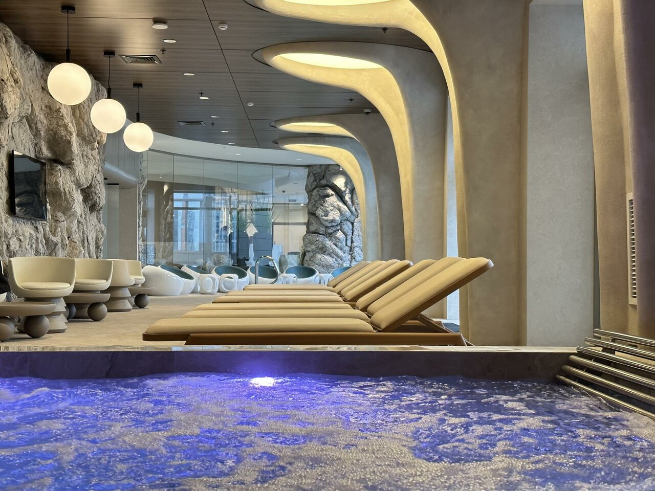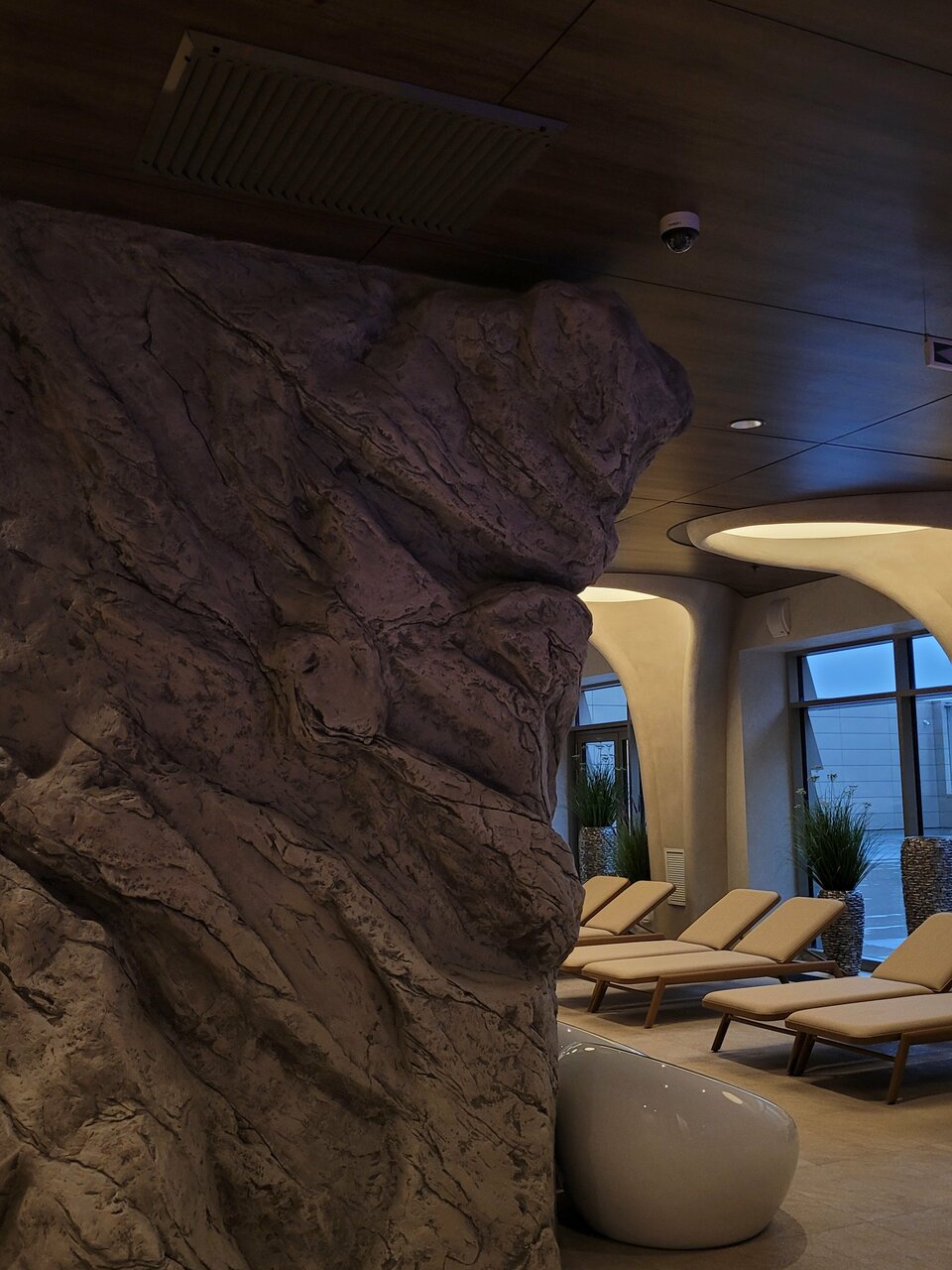 Была в спа и на массаже: всё новое, очень красивое, халаты и полотенца роскошные, само спа довольно маленькое, но приятное. Брала массаж на 90 минут — очень плохо. Массажист совсем не опытный, мышцы не промял, кожу натёр, движения одинаковые и монотонные. Не советую (