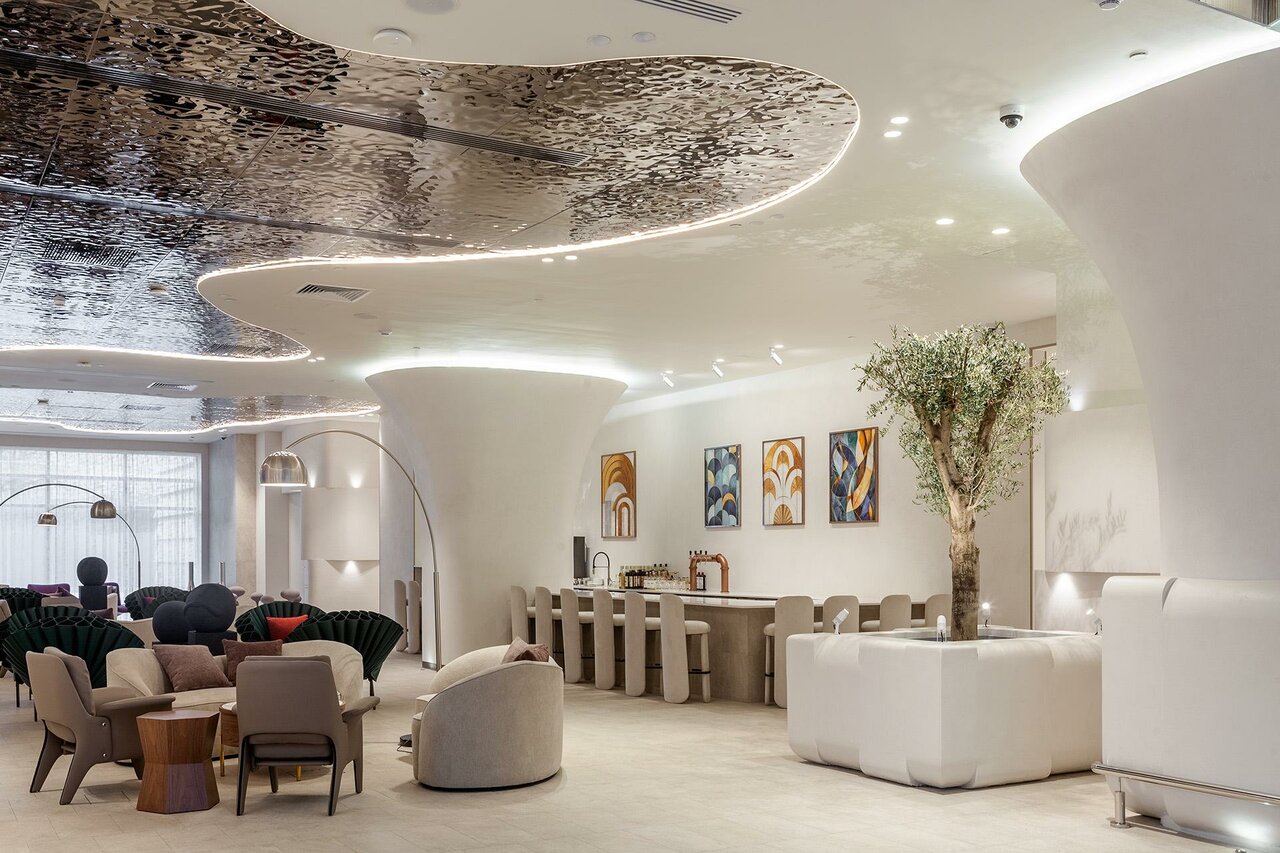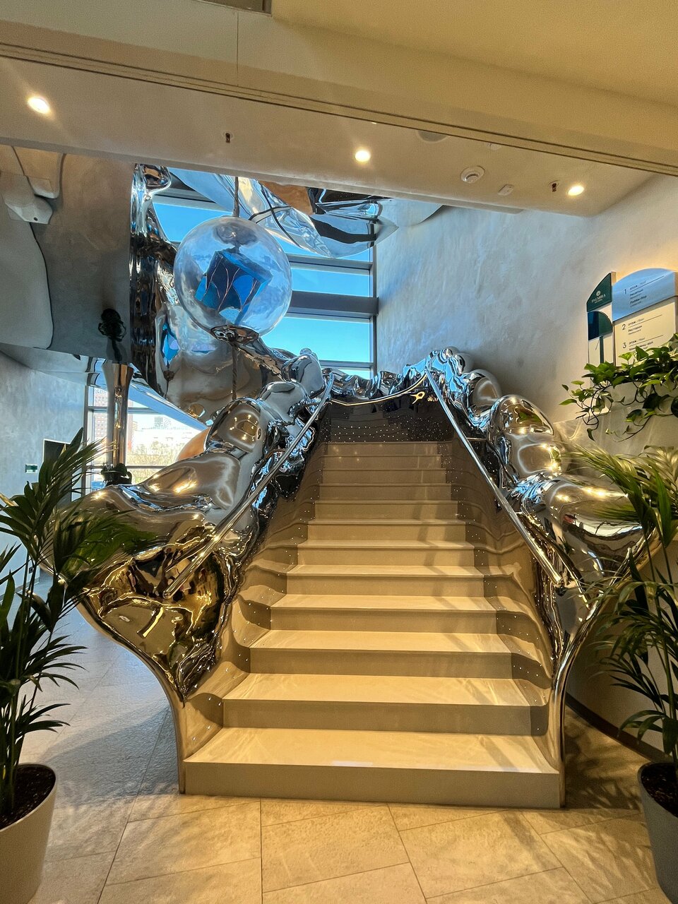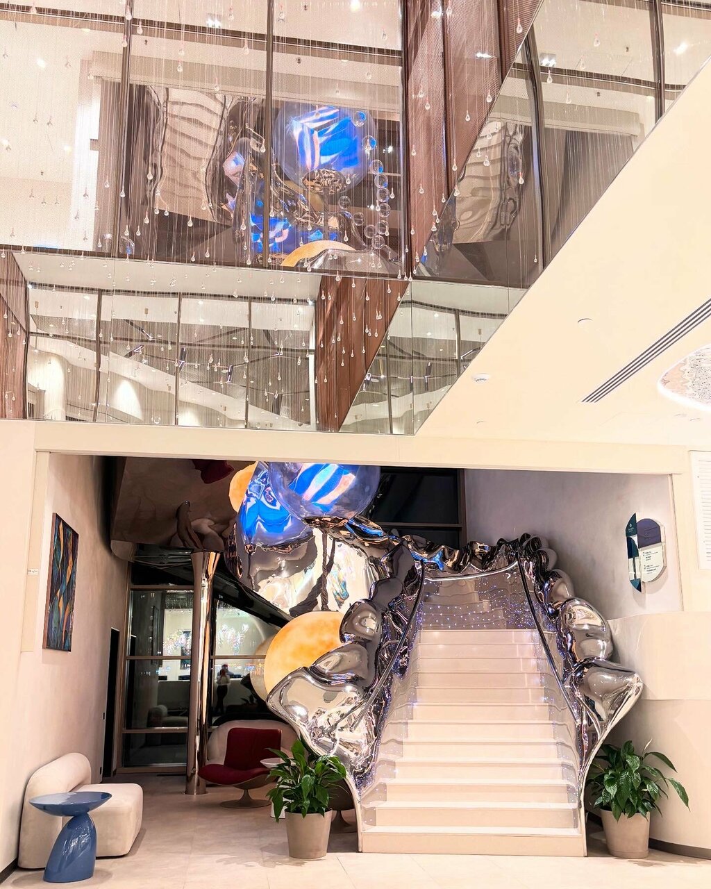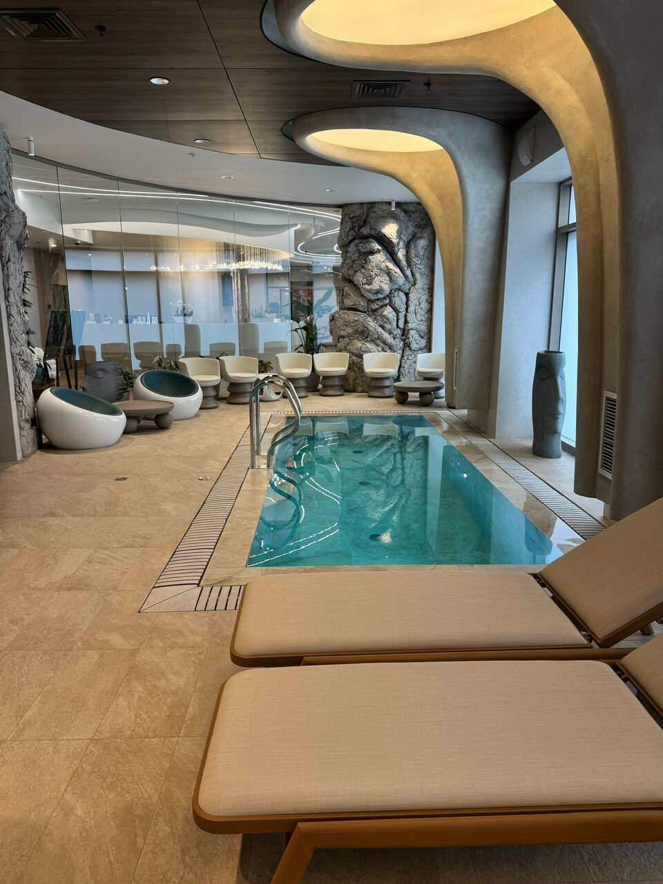 Рай для визуала! Волшебное инстаграммное пространство! Очень интересное пространство спа, с одном минусом- запах хлорки( ребята замените дез средство. Это реально портит настроение( очень внимательный персонал. Правда нас дважды заставили переезжать , так как номер по запросу был с раздельными кроватями, а нас определяли в номер с одной кроватью. И ТВ без функции смарт, без ютуб. Информация , чтоб не было неожиданностью, как для нас. Нет фитнес центра. Но потрясающий вид из окна и лестница- все сгладили.