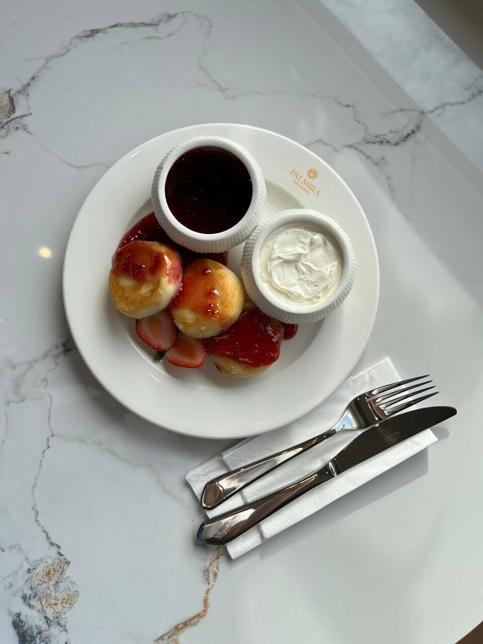 Симпатичный новый отель) Решили попробовать, потому что давно любим останавливаться в Palmira business club и Palmira garden. Открылся совсем недавно, поэтому все новое и свежее. Номера вроде все видовые, небольшие, но уютные. Удобные матрасы и качественное постельное белье. Сотрудник на ресепшен был очень вежлив и помог решить вопрос с небольшой путаницей при бронировании. Завтраки без излишеств. Омлет готовят по запросу. Удивила открытая кухня на шведской линии. И конечно, то из-за чего хочется возвращаться — это спа. Сауна, джакузи, бассейн — все понравилось. Если придираться, возможно слишком горячая вода. Думаю, это со временем скорректируют. Никакого запаха хлорки! Обязательно приедем еще)