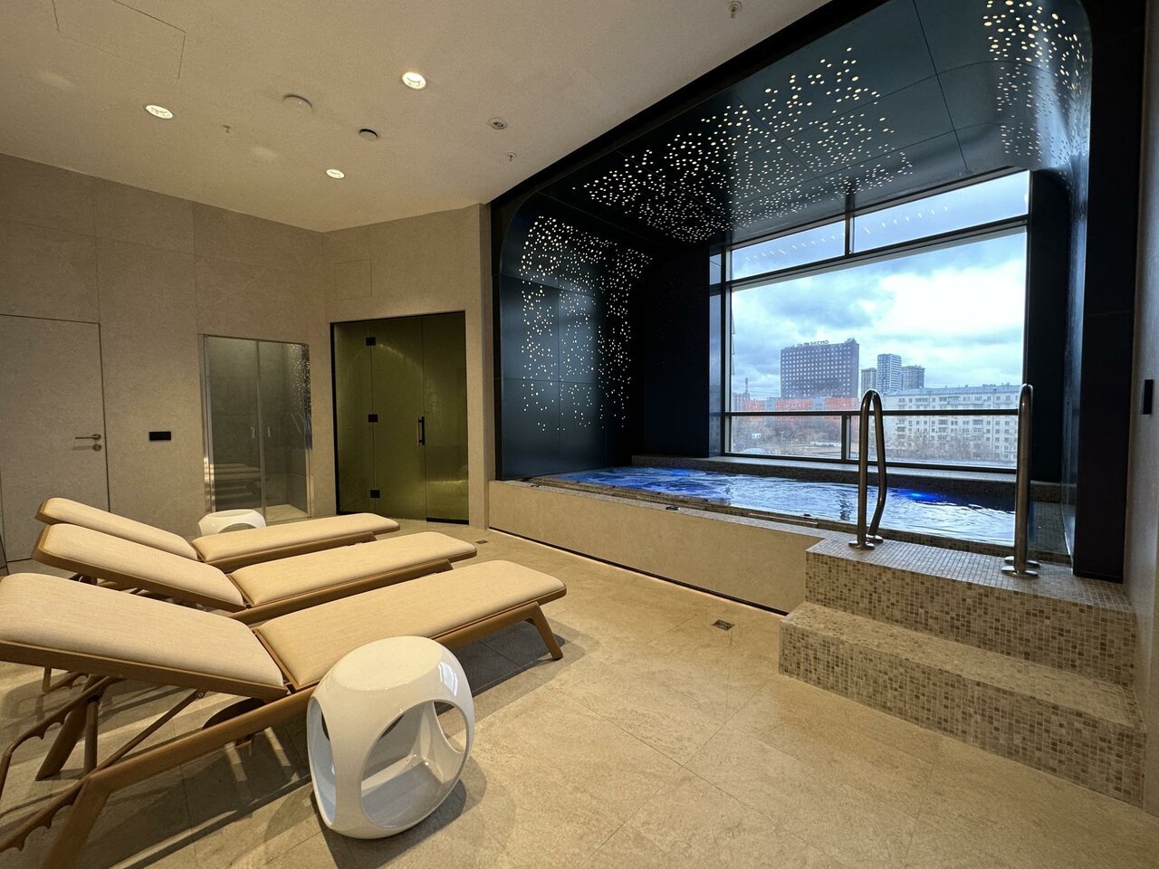 Приезжали отдыхать сразу после открытия (спа еще входил в стоимость стандартного номера). Красиво, очень хорошее управление климатом в номере. Не хватает вешалок для халатов и полотенец. С учётом наличия спа, у вас каждый день на руках мокрые полотенца, купальники, халаты. А каких-то крючков в ванной минимум, полотенцесушитель вертикальный и туда можно повесить только что то одно. Цены на еду и кофе в номер очень высокие, рядом мак, тц с кучей точек питания, на фоне этого платить две-три цены за капуч нет смысла. Хотя при более адекватной стоимости с удовольствием купили бы напитки и еду в отеле. Телевизор без смарт тв. Большое окно возле которого можно сидеть на специальном диване и смотреть на город. Это прям круто. Впечатления в целом положительные.