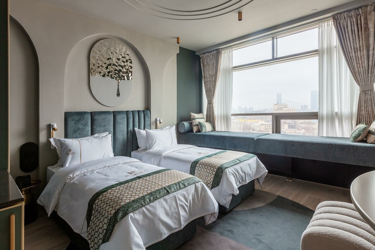 Совершенно новый и очень чистый отель — настоящая находка! Номера просто восторг: стильные, продуманные до мелочей, всё аккуратно и приятно глазу. Бархатные полотенца свежие, не застиранные, кровать большая, мягкая и удобная, а постельное бельё такое приятное, что вылезать из него не хочется — пахнет новизной. Отличное расположение: 5 минут пешком до метро, рядом большой торговый центр. В самом отеле вкусно пахнет, а в номере стоит диффузор с невероятным ароматом — мелочь, но очень добавляет уюта. Из нюансов — по приезду было жарко из-за высокой температуры на батарее, но её можно отрегулировать, плюс окно открывается на проветривание, что решило проблему. Единственный минус — горничная не вынесла весь мусор и не пополнила набор для кофе/чая. Однозначно вернусь сюда ещё.